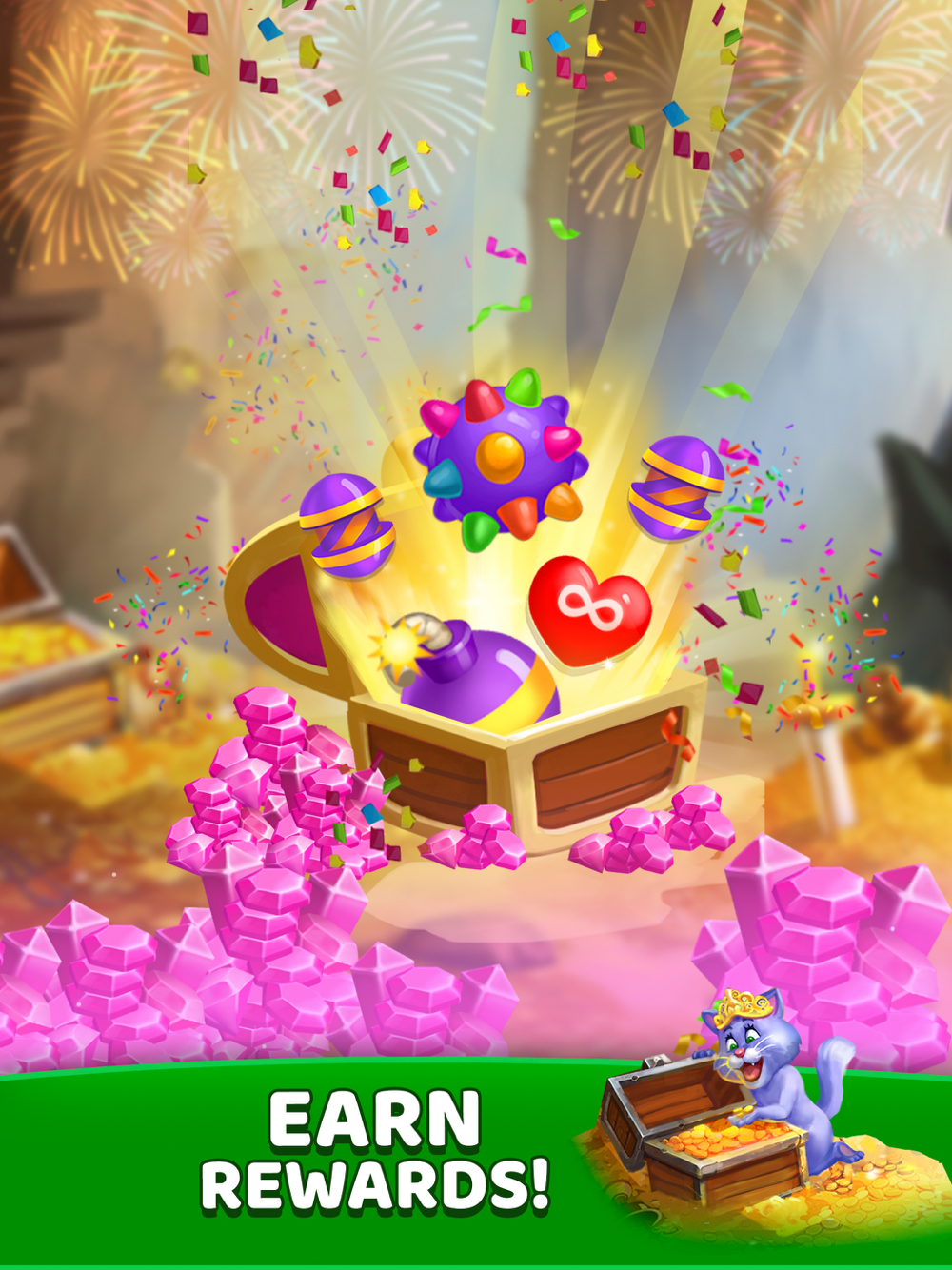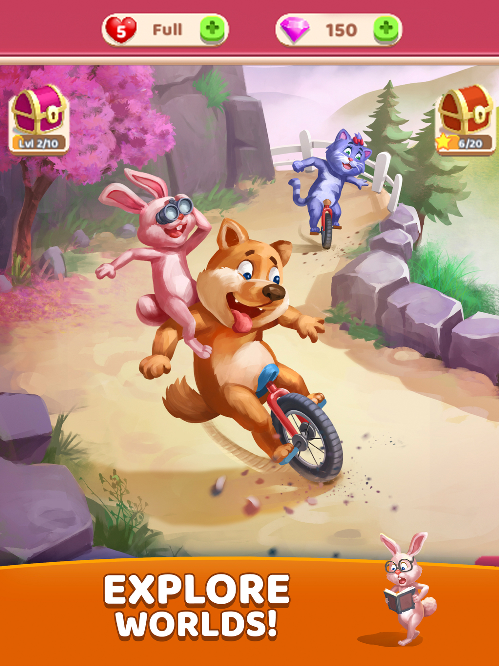 - Discover challenging levels on a pets paradise with fun free match 3 games.