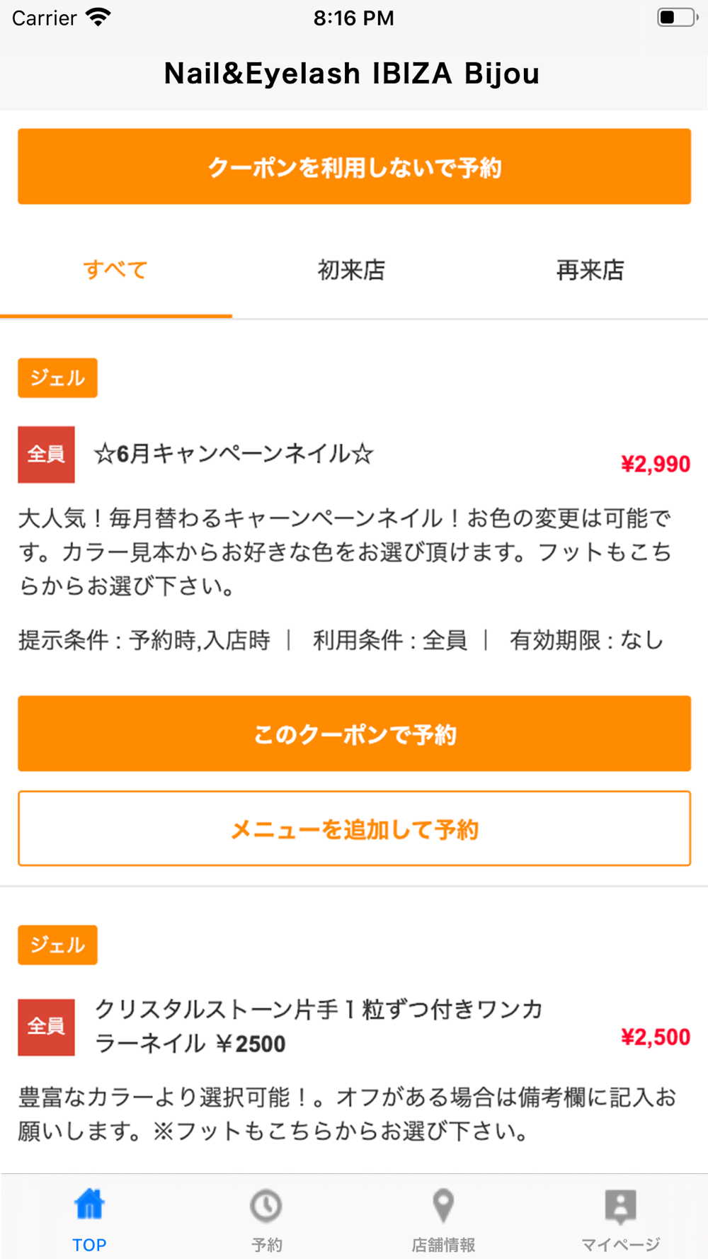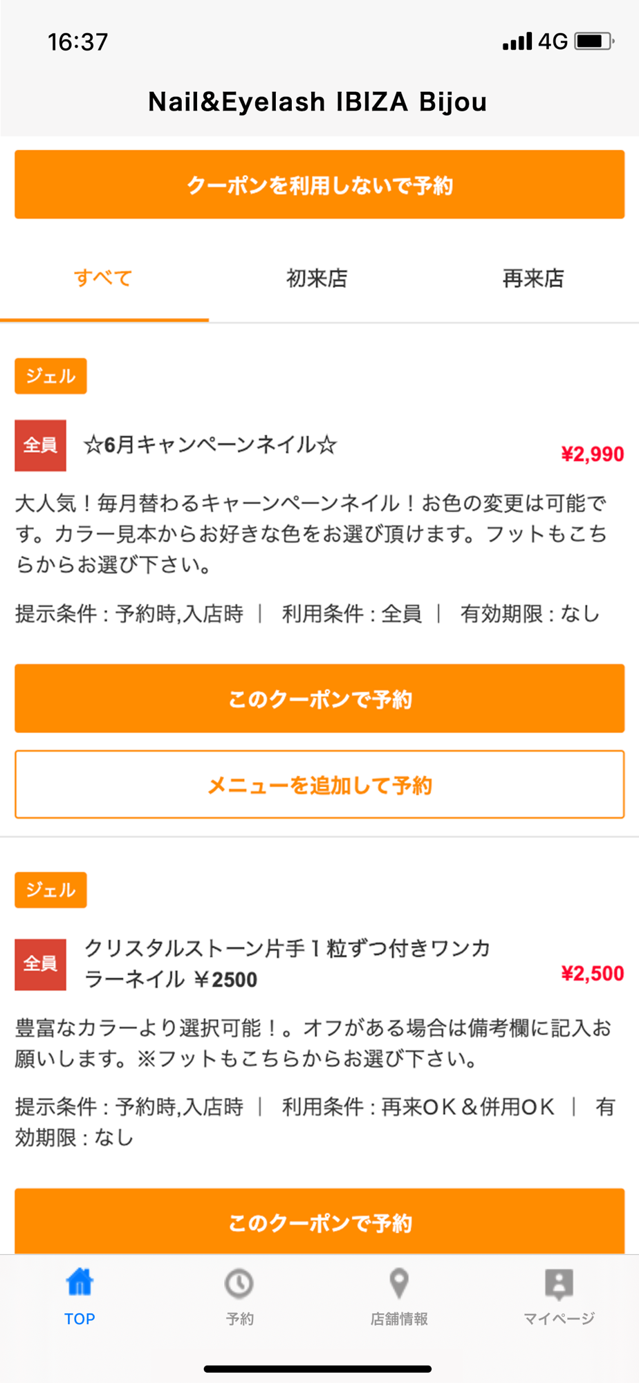お得なクーポンが配信されます。ネット予約時にクーポン利用での予約も可能なので来店時もスムーズに施術頂けます。