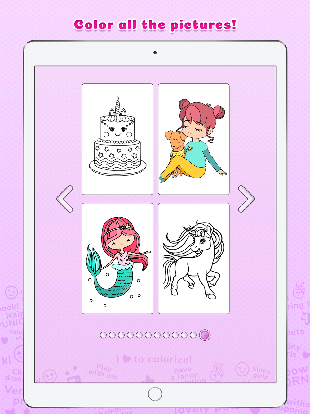 - Our app is the perfect for girls and all who love coloring games, cute pictures!