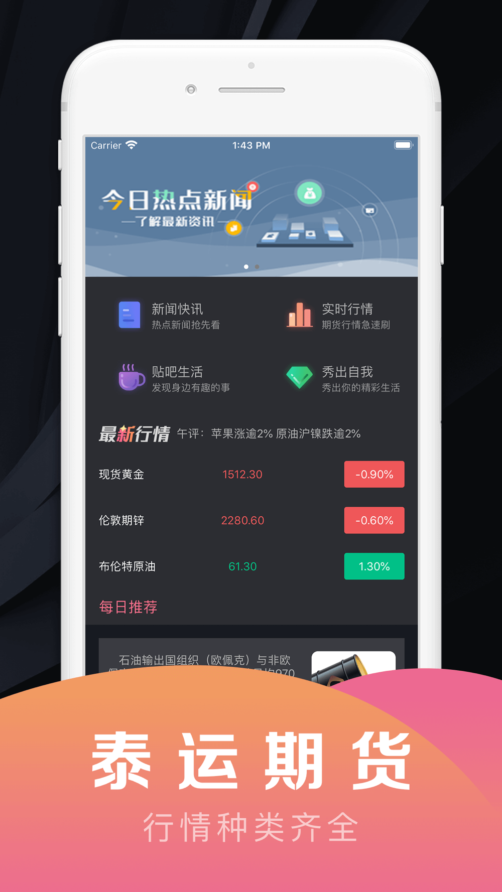 泰运期货拥有专业的数据资源。提供实时行情、资讯动态等优质的数据服务。着力于为用户打造一个更好的期货资讯平台。