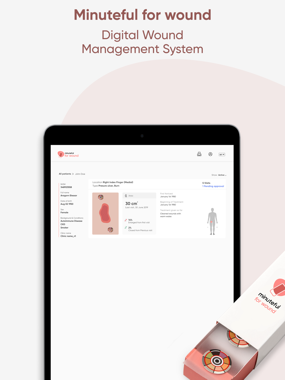 Together with the Minuteful for Wound calibration stickers, this app enables clinicians to scan, measure, and document wounds. The app automatically measures the wound’s dimensions, segments the tissues, and calibrates the images using proprietary algorithms. All data is securely sent to the Minuteful for Wound web portal or integrated into the patient’s EMR for further evaluation.