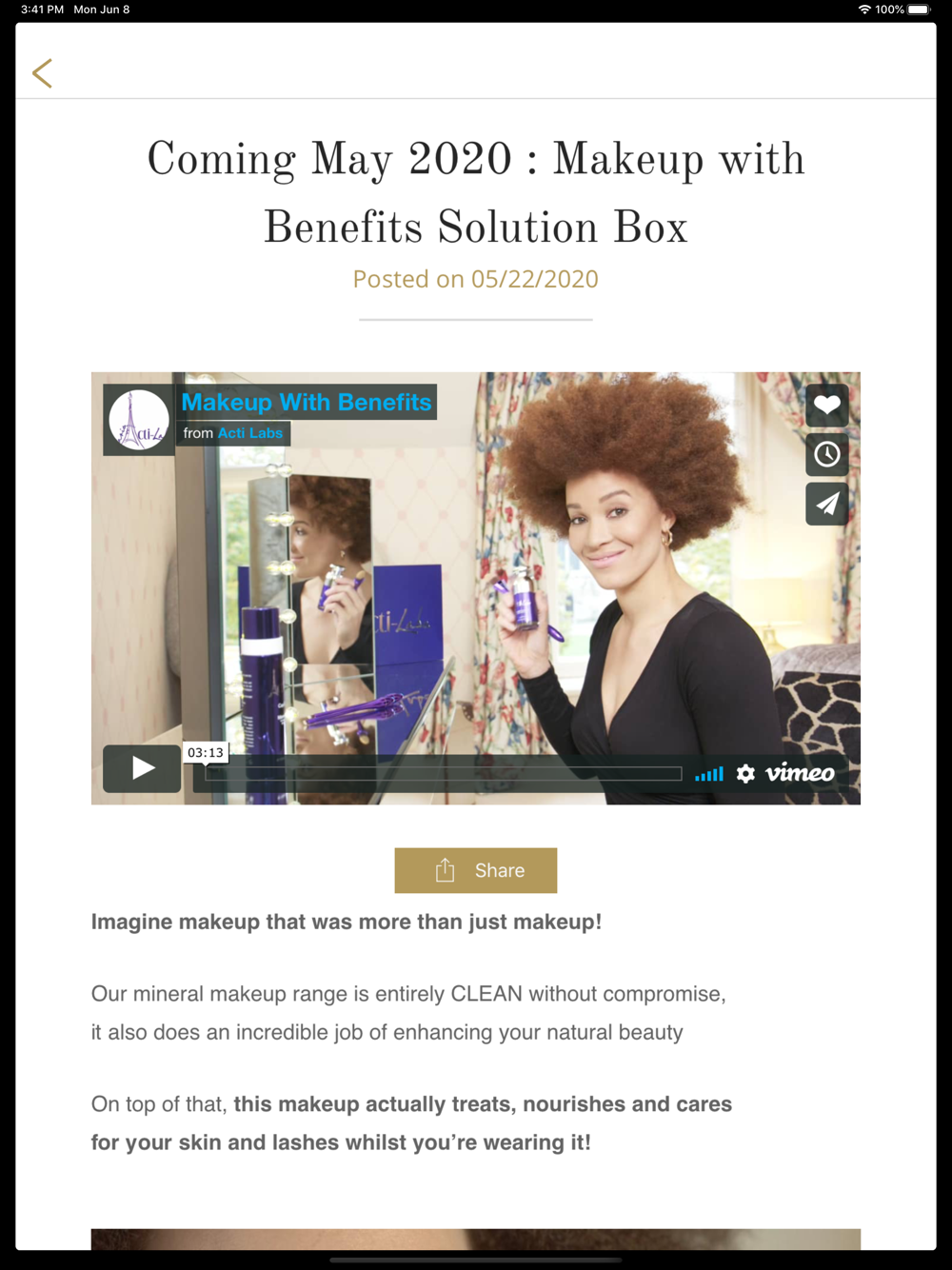 The Acti-Life app is the a great place for anyone to learn about Skincare, Bodycare, Cosmetics and even Dieting. In the app we address a variety of concerns with videos, tips and products to provide a solution. Several times a month we will address new concerns so that you can learn more as time goes on.