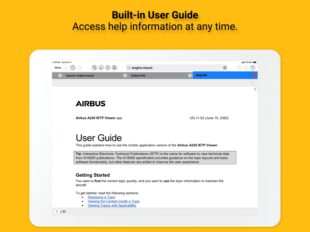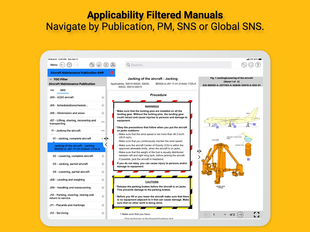Access up-to-date Airbus A220 Maintenance manuals with easy search, S1000D compliant navigation, in a fast, technician-friendly user interface.