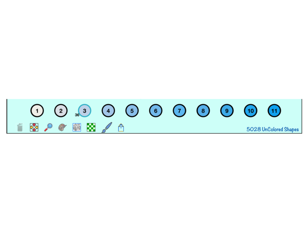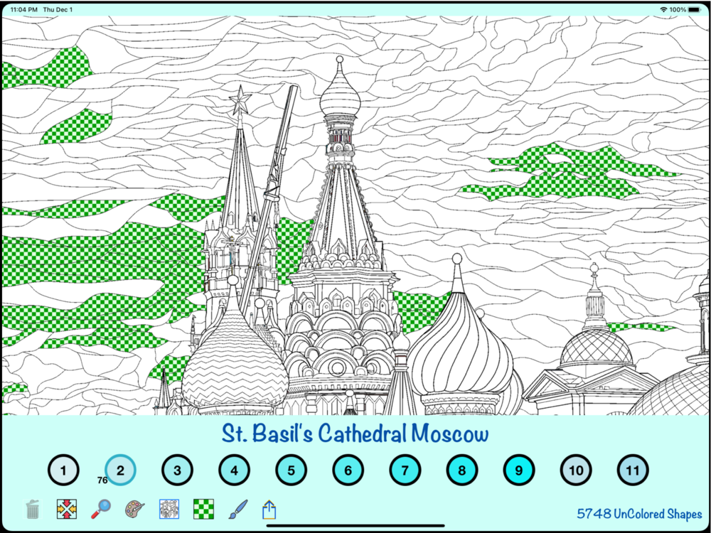 The number of shapes to be colored in the different landmark images ranges from approximately 1000 to 6000. The user can select from three values for the number of shapes for most images. The resulting colored images can be easily shared with family and friends.