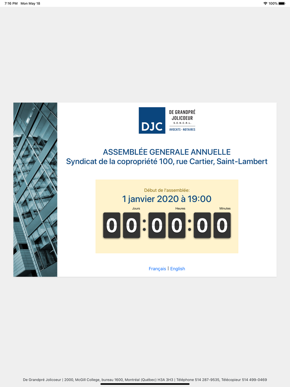 Easy communication between the president of the meeting, the directors, the various speakers and the co-owners via video and audio;