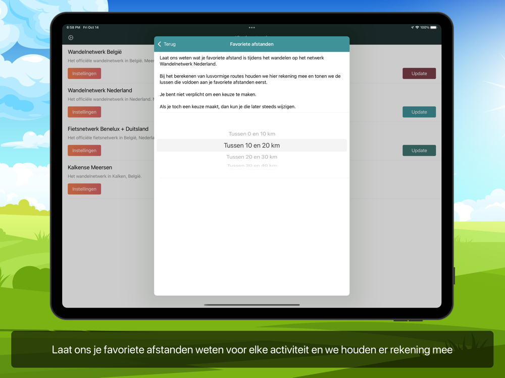 Stel je favoriete afstand in per netwerk en de app houdt er rekening mee bij het plannen van lussen en bij het zoeken naar routes.