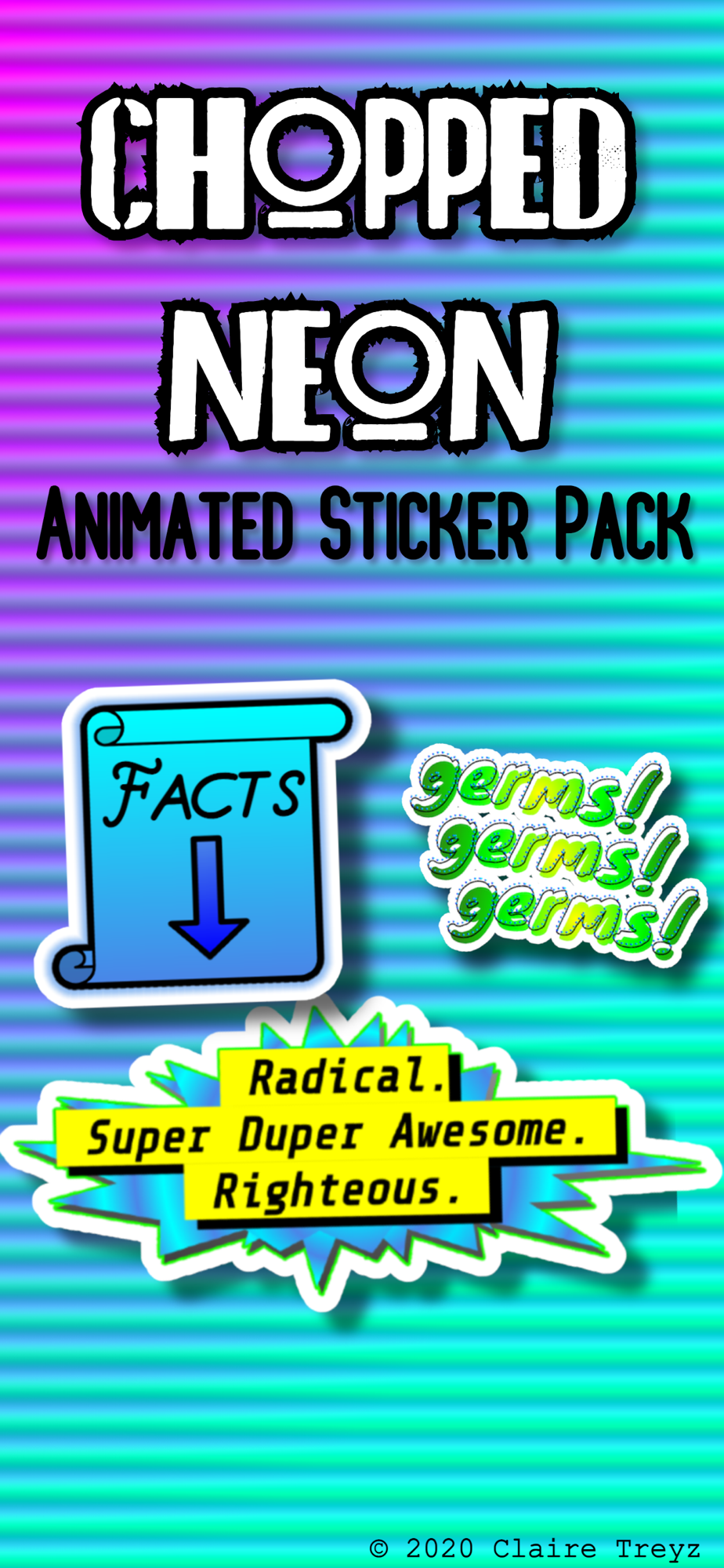 Well, fear not, my weary sticker-seeker, for animations does this sticker pack deliver – over half the stickers are animated, and the rest are so loudly fluorescent your eyes may very well see animations anyhow.