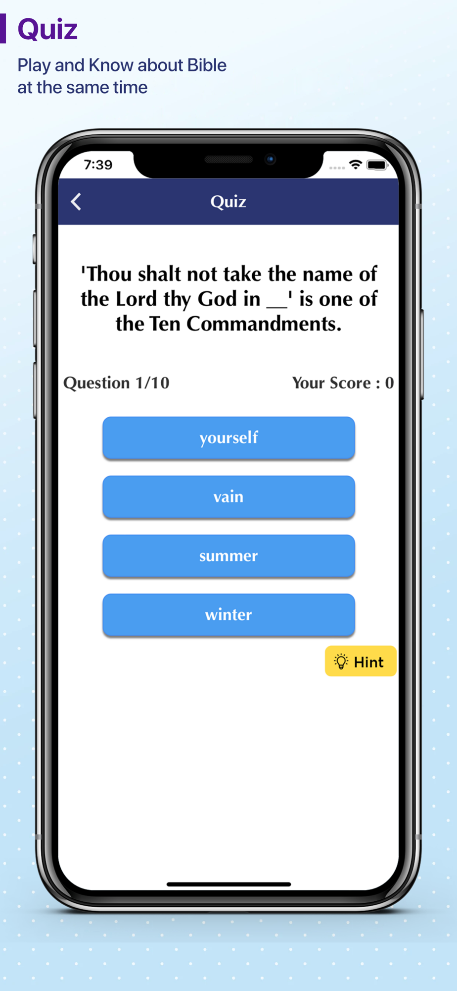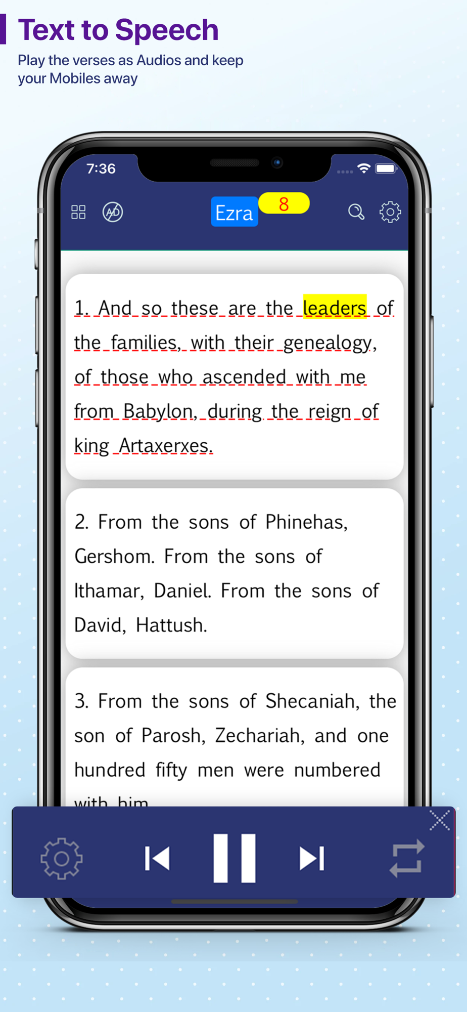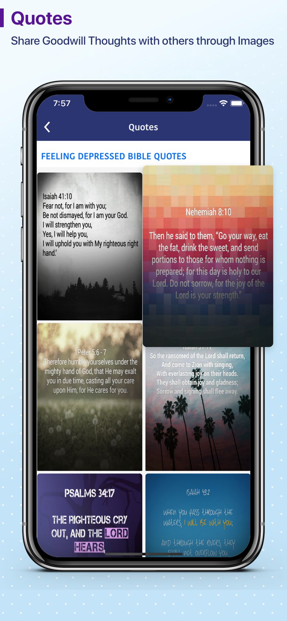 ● Share verses via multiple platforms with ease, like Facebook, Twitter, SMS, WhatsApp, Skype, etc..
