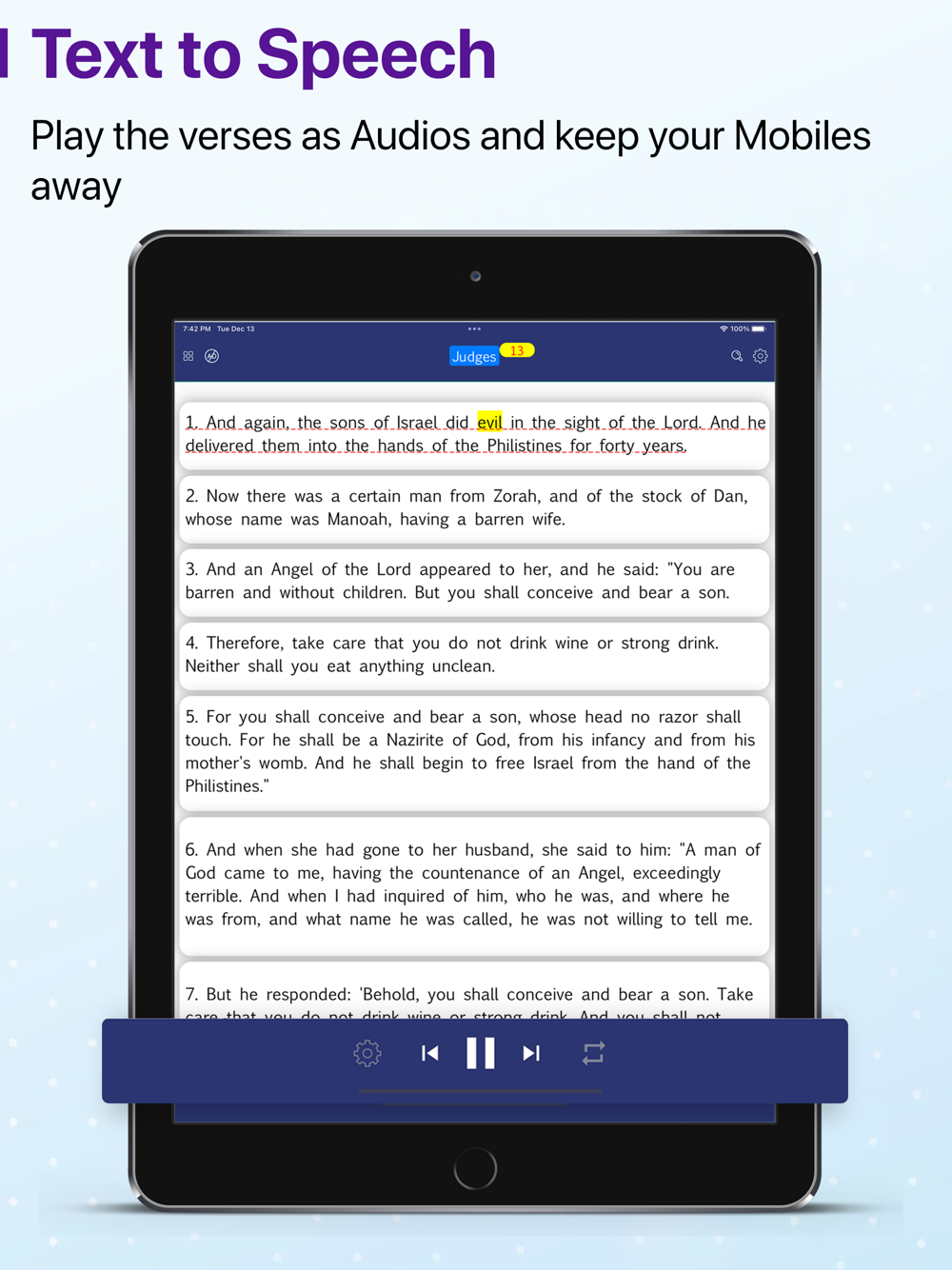 ● Quick Access: By just a few taps you can quickly navigate to any book, chapter and verse.
