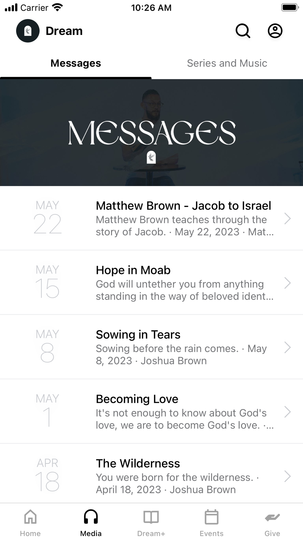 The Dream App is filled with content such as sermons, original music, events, and more. You'll also have a journal feature that saves your notes to the app so you always have them. Don't forget to "allow" push notifications to stay up to date with all things Dream.