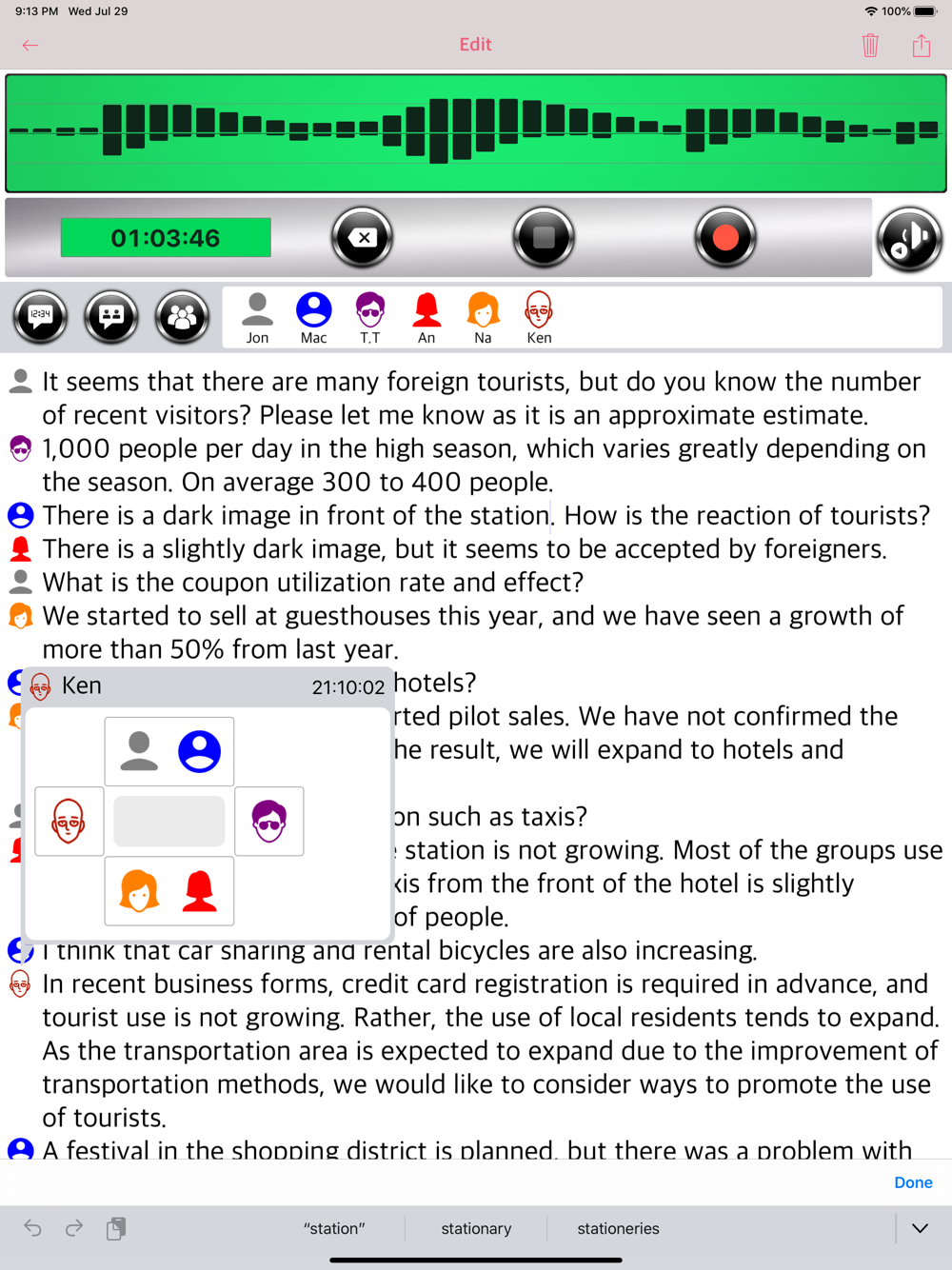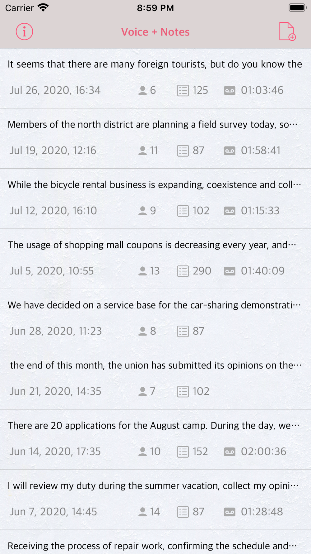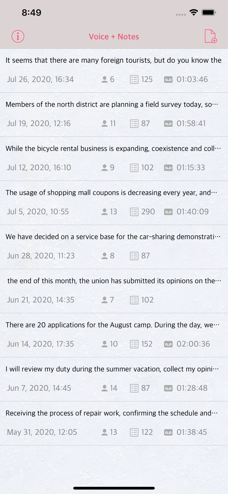 The purpose is to make recording work smarter in meetings and interviews. In some cases, the situation of the speaker and surroundings may be recorded in a notebook in time with the recording by the voice recorder. This application streamlines report work by synchronizing recordings and notes.