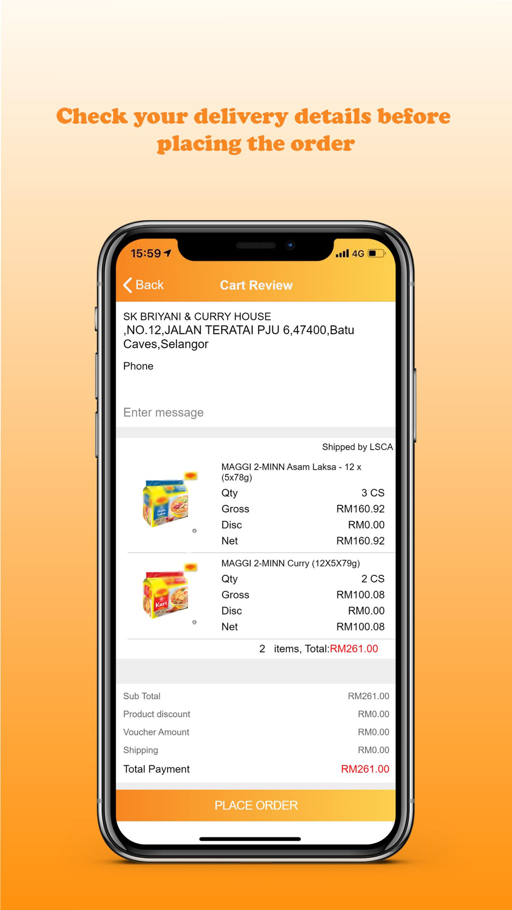 * Full visibility of Product list, Prices, Promotions and Order Status