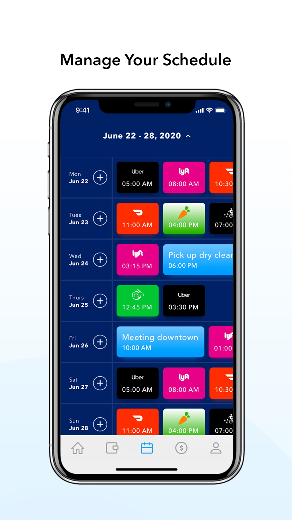 Juggling multiple jobs is never an easy task, but our Scheduling tool was built from the ground up with the gig worker in mind. Organize your time across all your jobs and tasks and visualize your week in a way that allows you to work more efficiently.