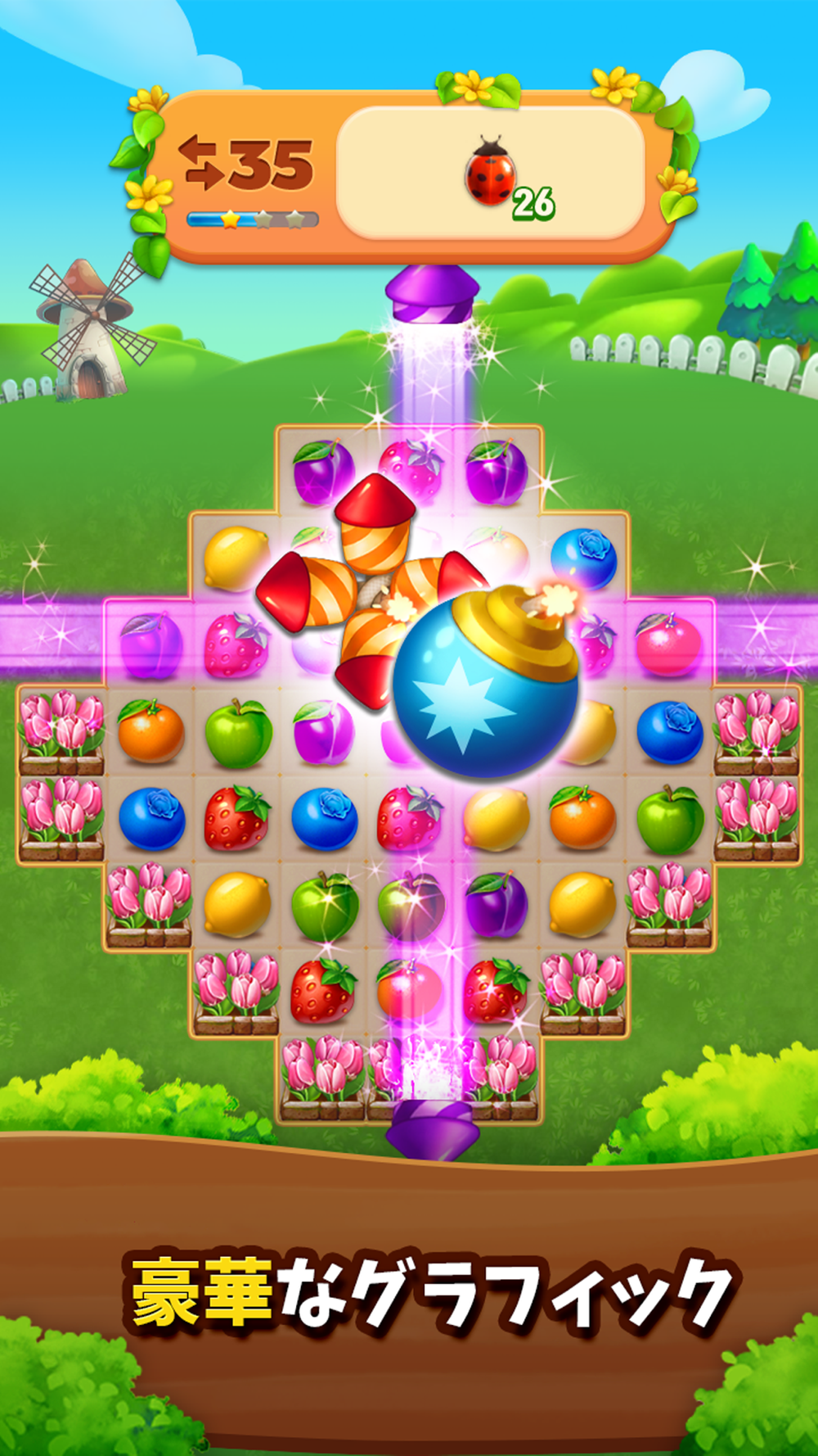フルーツファーム:スイートマニアで、エキサイティングでダイナミックなマッチ3パズルを楽しみましょう。