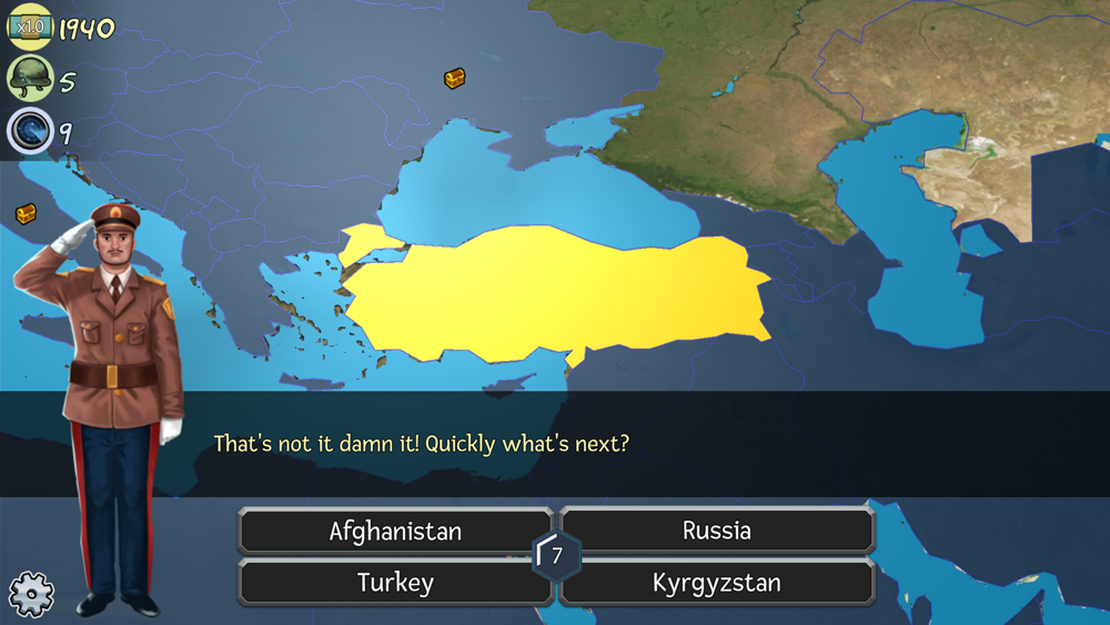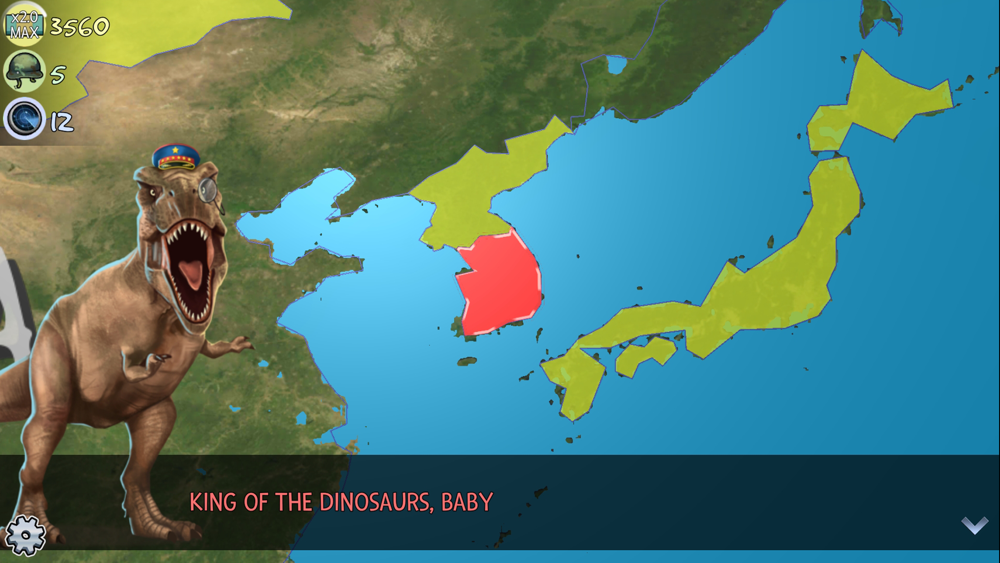 Conquer countries by simply learning their names. Answer trivia questions, survive time trials, identify national flags and capitals. Can you defeat the dictator’s oldest enemy, a tyrannosaurus tyrant? And his true nemesis, forgetfulness?