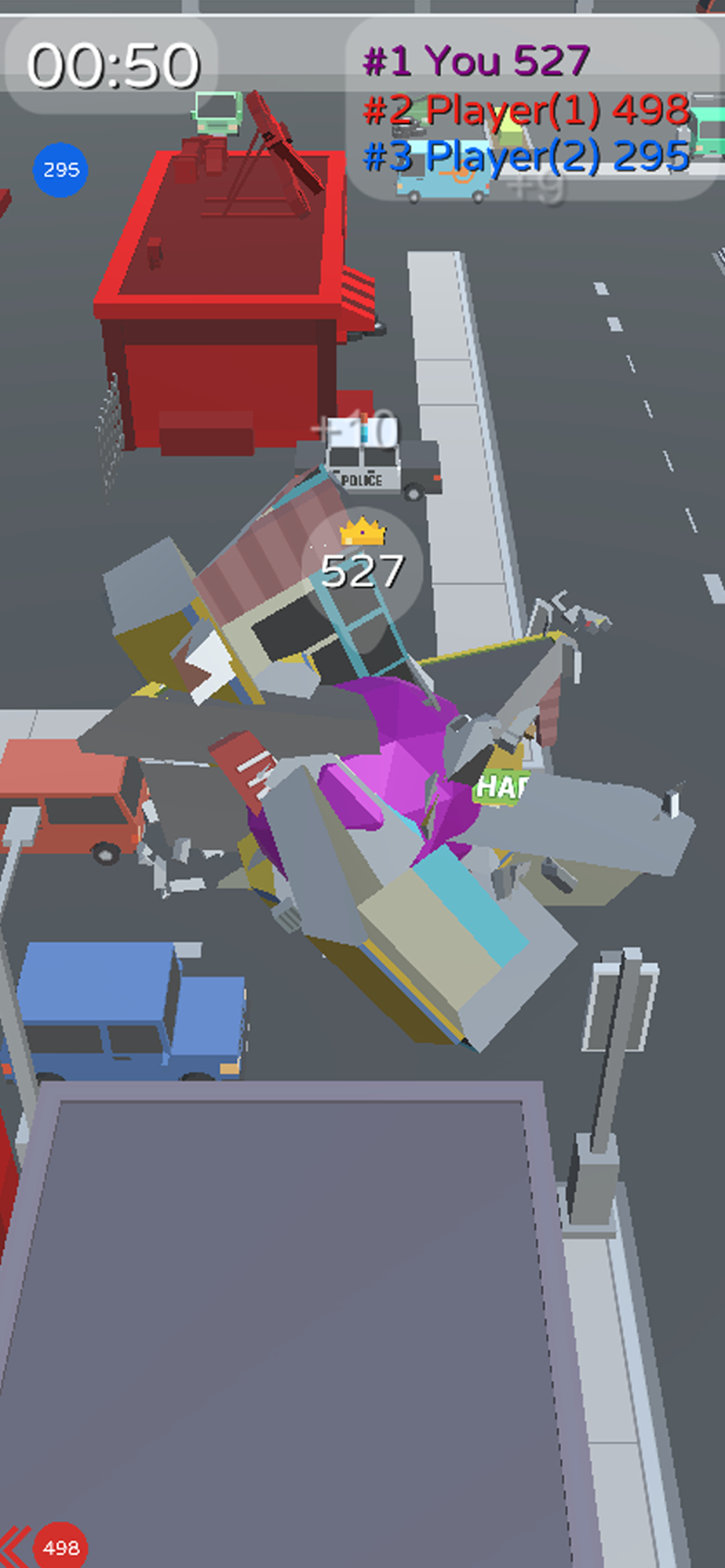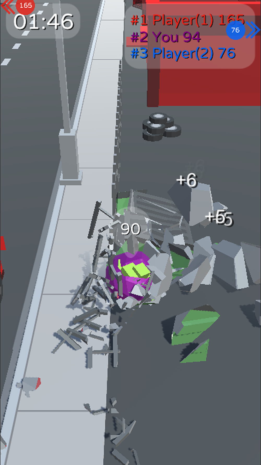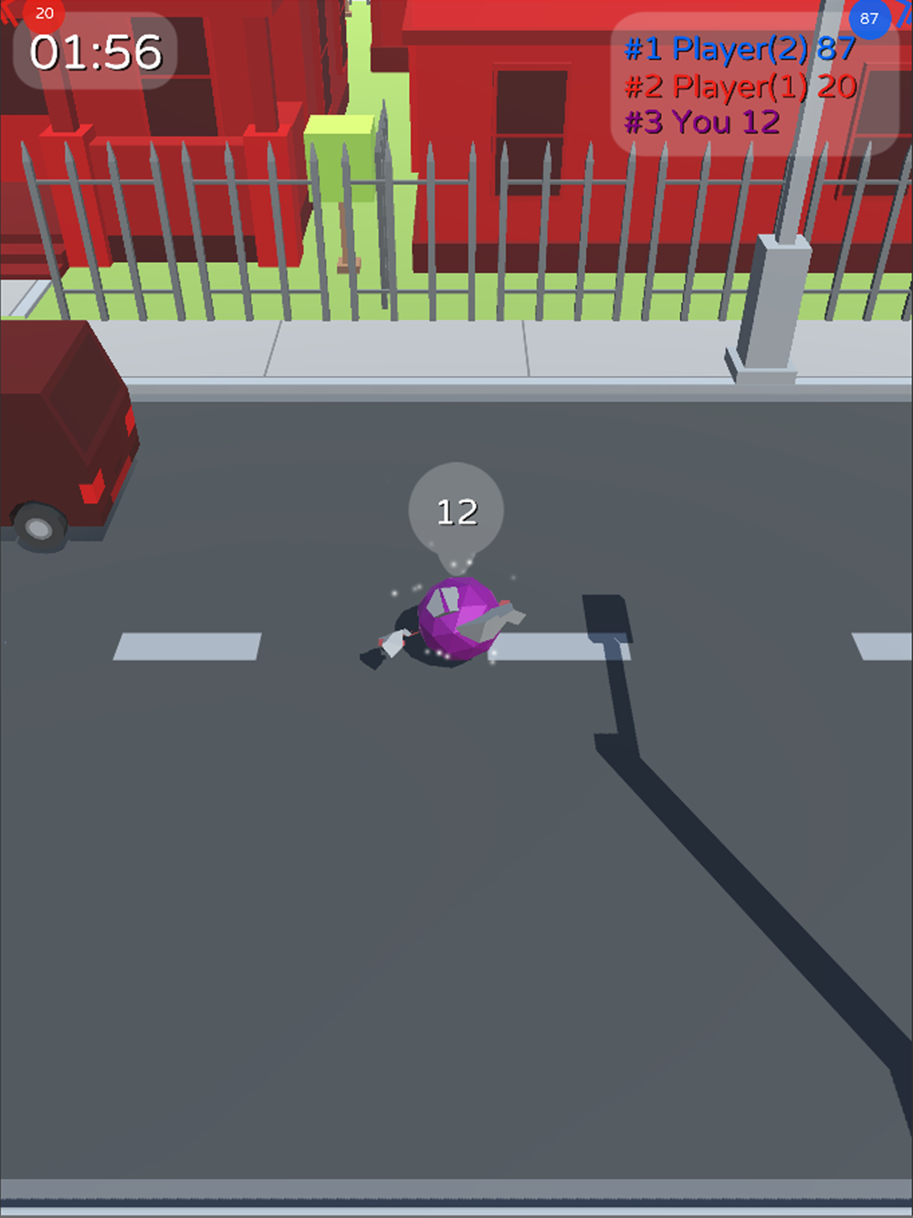 If an object is red it means that you're not big enough to destroy it yet, crush smaller objects first. Become the King of Rocks to win the round.