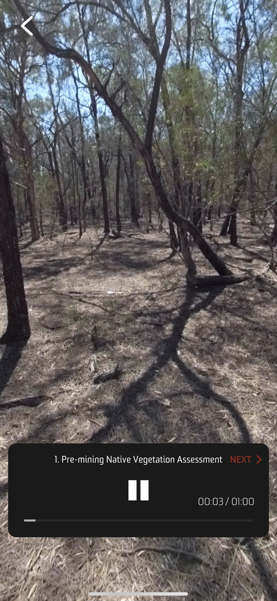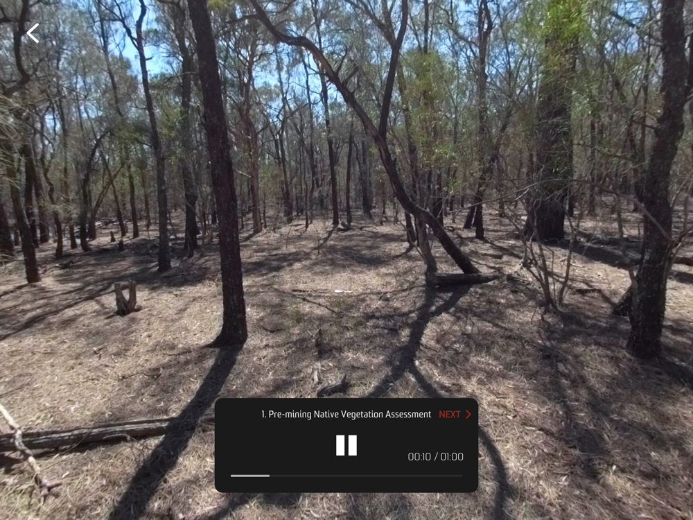The Open Cut Mining Experience has been developed for the students of Minerals and Energy Resources Engineering (MERE) subjects at the University of New South Wales (UNSW), Australia. The app provides an overview of the mining process of an operating Hunter Valley Coal Mine from start to finish. A cross-section schematic diagram is presented as an interactive menu to show the viewer where each of the mining stages fit in context and how they relate to the underlying geology. The viewer can select to visit a variety of sites corresponding to the mining stages. A series of 360-degree photos and videos are used to take the viewer "onto the ground" at each location where they can look around and observe the conditions with a voice-over that explains what they are looking at.