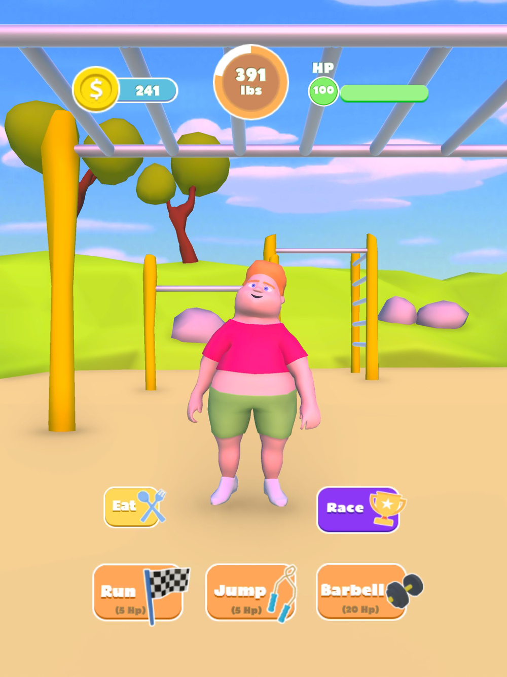 You need to help the characters to lose weight and transform to fit from fat. Can you perform different mini fitness games successfully and help them to decrease 180 lbs from 500 lbs?