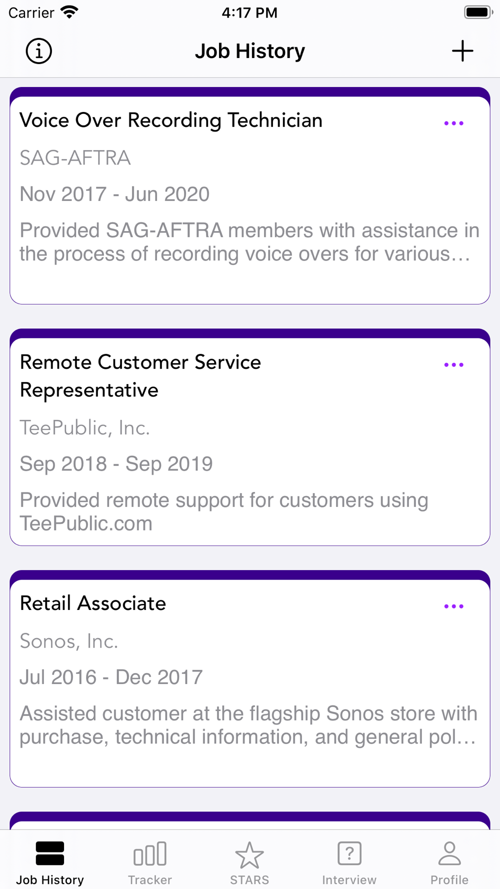 CareerView is the organizational tool for job seekers. Record all your past/present work experiences and use it as an easy reference for future potential employers.