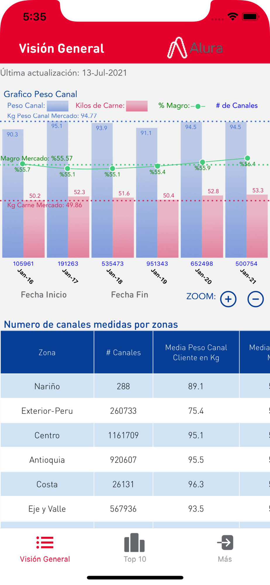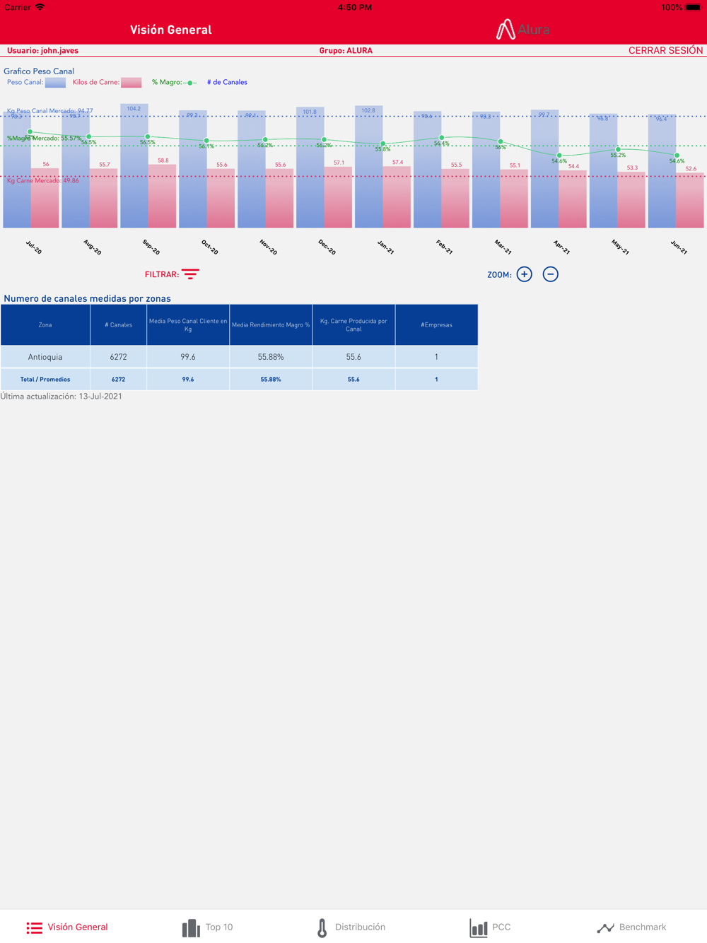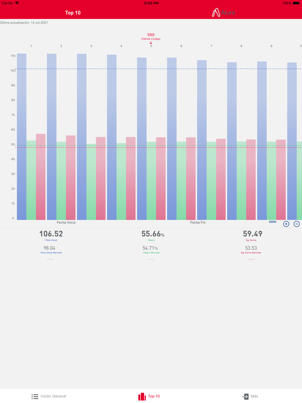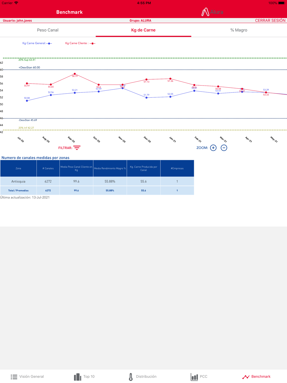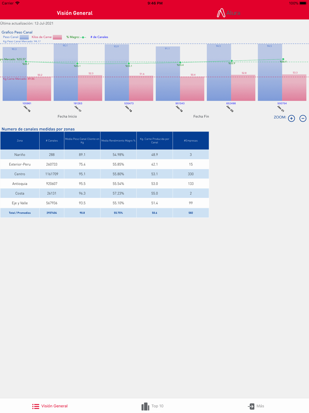 En este aplicativo usted podrá conocer el rancking de su calidad comparado con las 10 mejores calidades de canal y frente a la media poblacional del país.