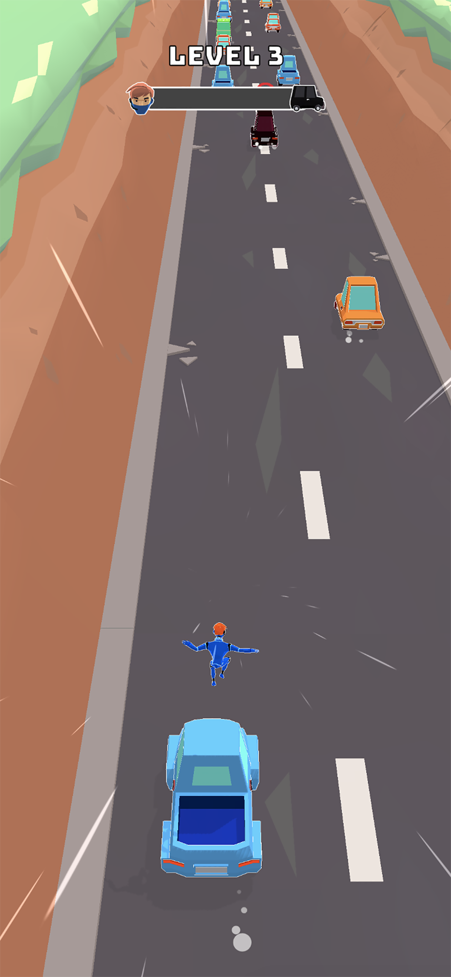 Jump from one car to another to chase and catch the thief! Easy to use mechanics and addictive game play.