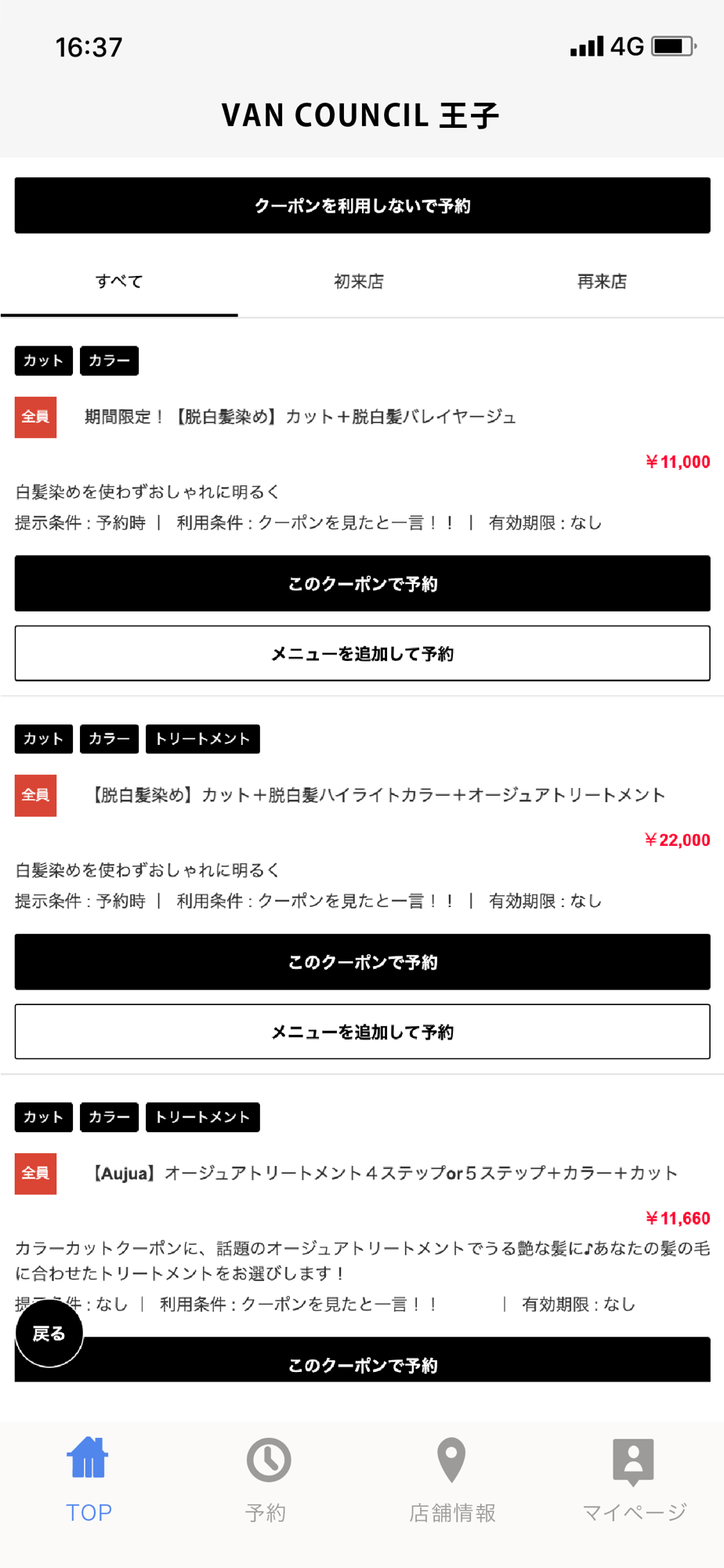 お得なクーポンが配信されます。ネット予約時にクーポン利用での予約も可能なので来店時もスムーズに施術頂けます。