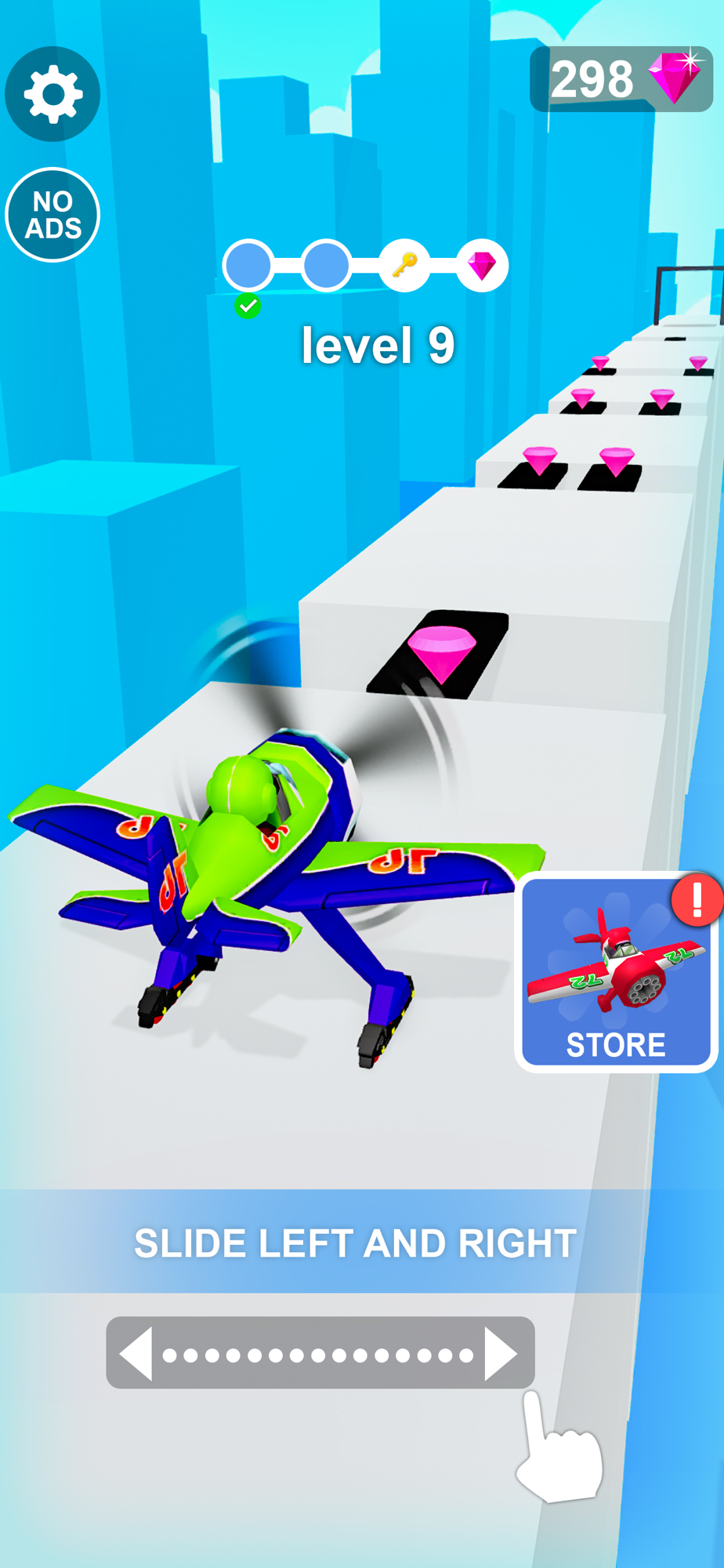 Control the skating planes by dragging fingers left to right and avoid crashing. Control the skates attached to the plane to avoid any hit and have a safe flight.