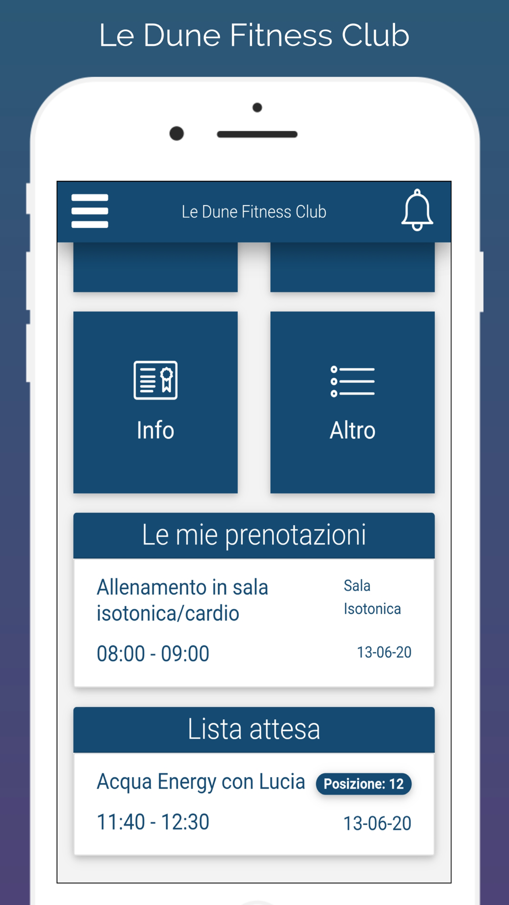 Applicazione dedicata ai soci del centro sportivo "Le Dune Fitness Club"