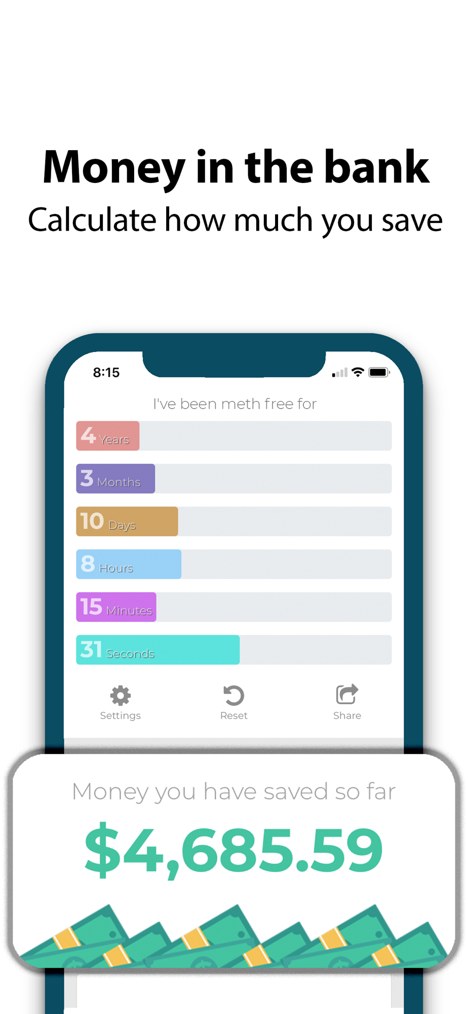 8. Our built in money calculator will show you how much money you have saved since quitting