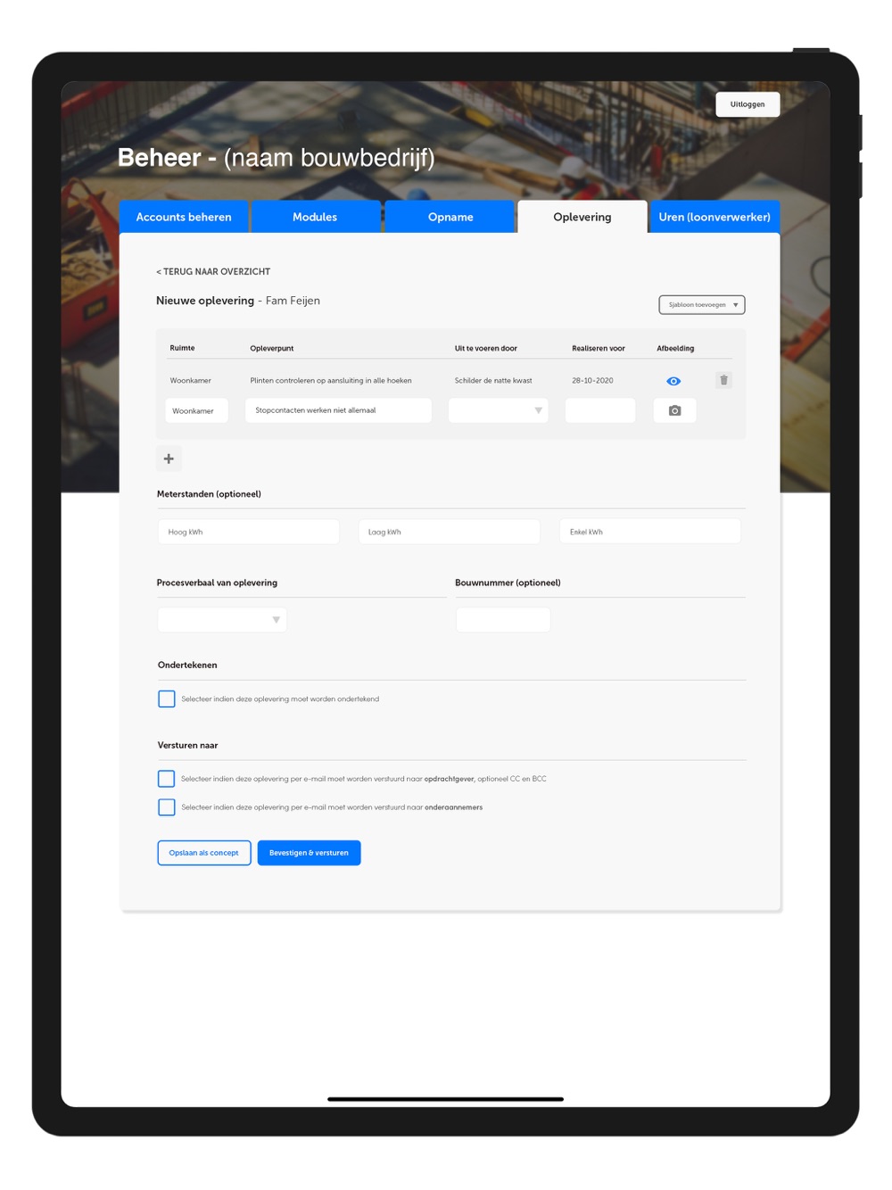 De opdrachtgevers kunnen onder andere de planning, facturatie, documenten en het meer- minderwerk inzien.