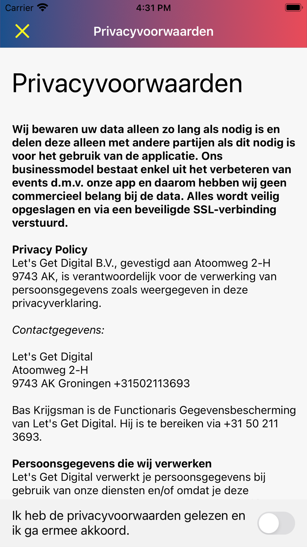 The official Let's Get Digital app. This app contains various LGD event apps inside it. Log in and see the program, line-up and much more of the event you are attending.