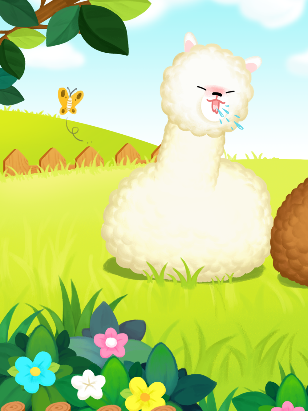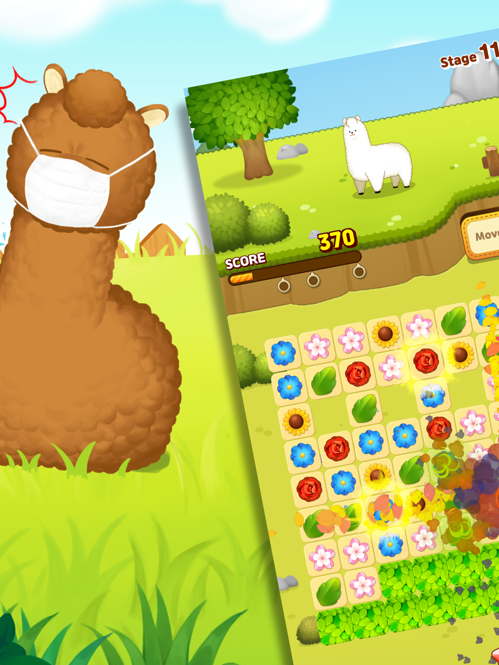 The 3-match puzzle game play in the flower garden, with cute alpaca !