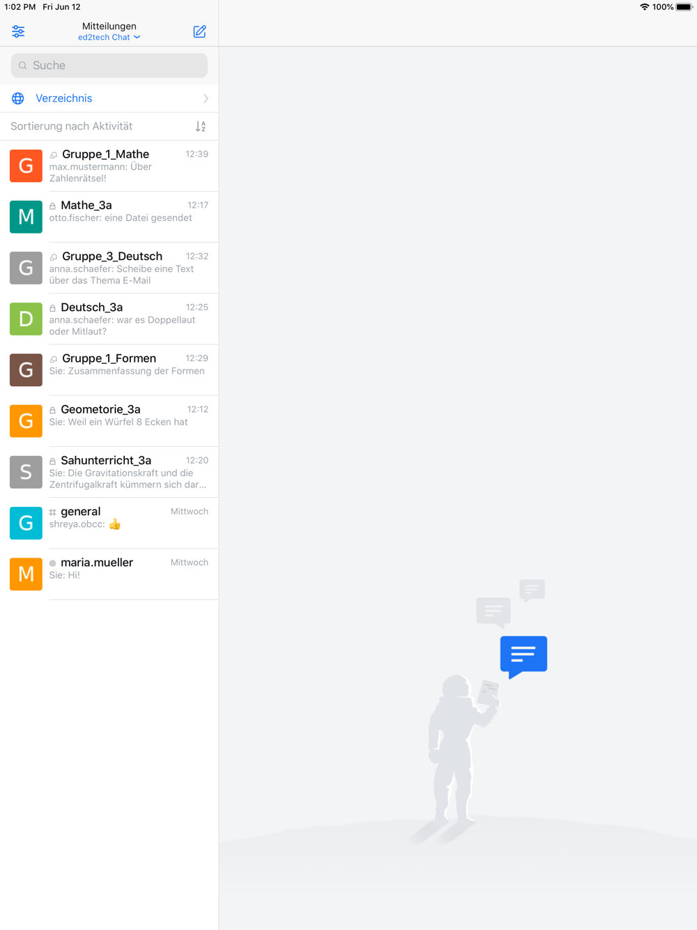 Dank des Moduls können nicht nur zwei Personen – Lehrer mit Schüler oder Schüler mit Schüler – miteinander kommunizieren. Das Chat-Modul beinhaltet zudem Broadcast- und Gruppenchat-Funktionen. In jeder Konversation können Nutzer die ihnen aus anderen Programmen bekannten Chat-Funktionen wie Text, Sprache, Bilder, Videos, Dokumente und Links mit Hilfe des Chats nutzen. Sie sind dabei jedoch immer im sicheren Umfeld ihrer Lerngruppe unterwegs, die von ihrem Lehrer oder Lernbegleiter verwaltet und betreut wird.