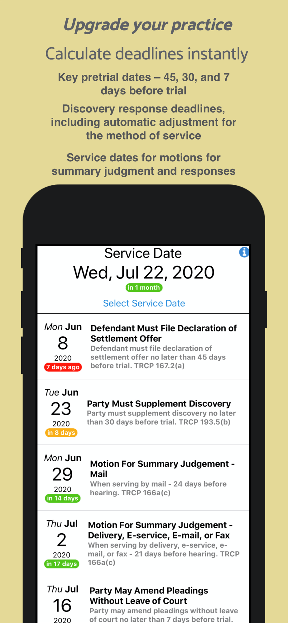 Calculate Pretrial Deadlines Instantly. By simply selecting the Service Date, this calculator lists: