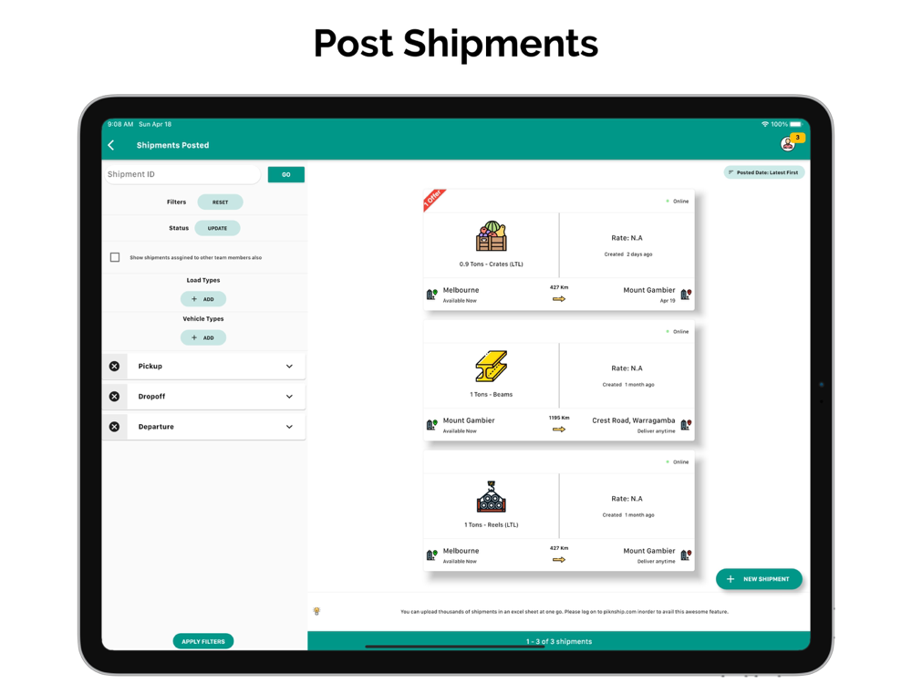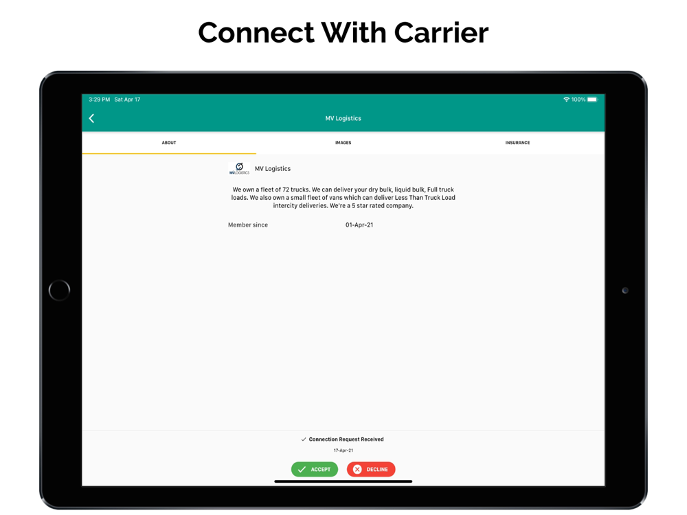 Discounted rates from trucks going half-filled or empty on return journeys. Get multiple booking requests, call the carrier, chat with the carrier, read reviews and accept booking.