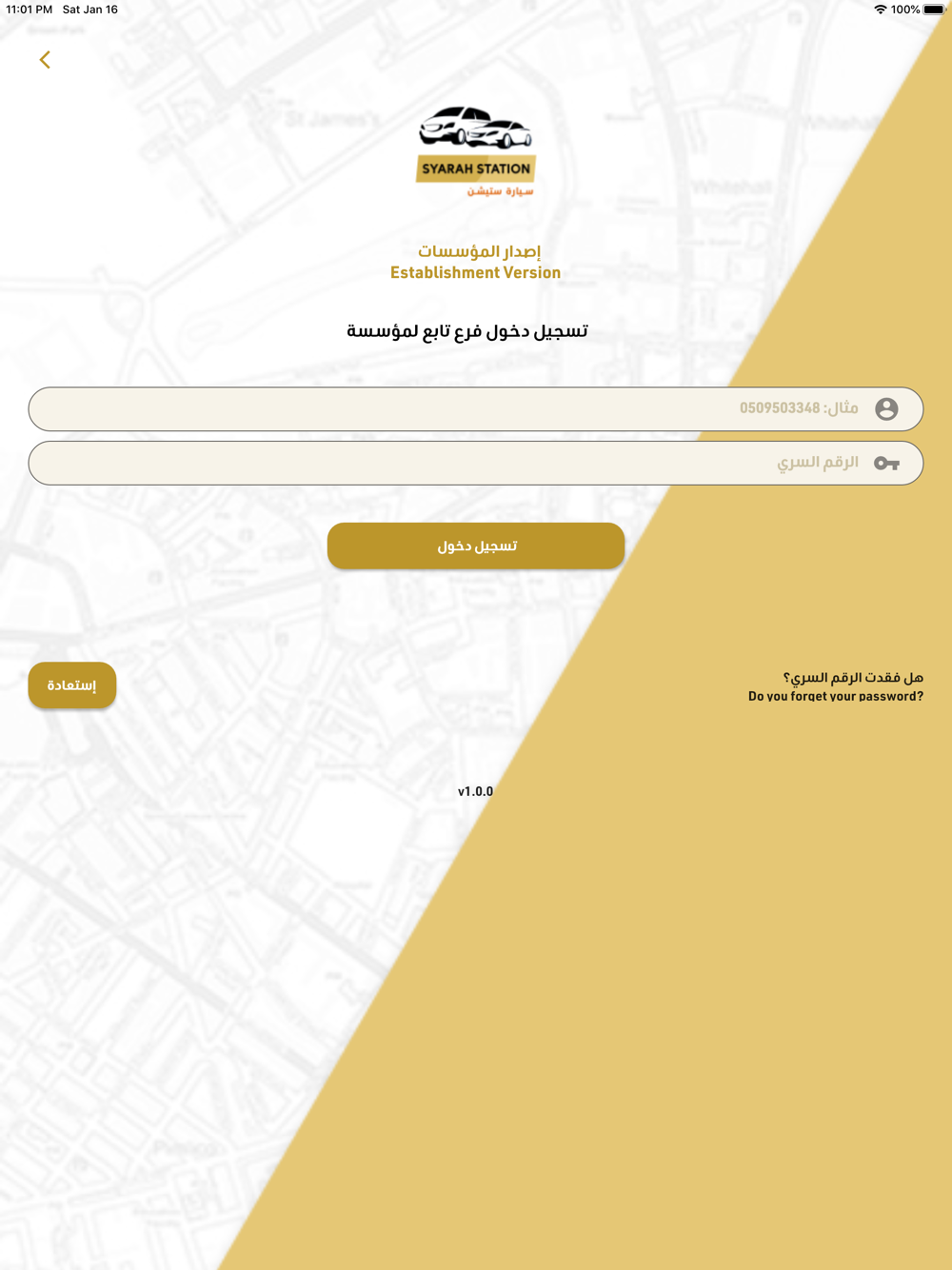 هذا التطبيق مخصص للمؤسسات في تطبيق سيارة ستيشن ولا يسمح للمستخدمين بتنزيل هذا التطبيق.