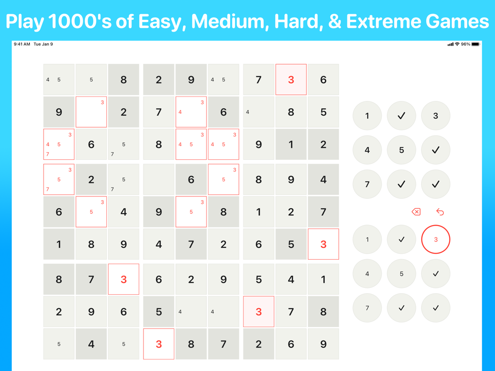 Enjoy five free games of Easy, Medium, and Hard. If you want more great puzzles (including an all new "Extreme" level), Sudoku Pro is available for purchase in-app. This single purchase works across iOS, iPadOS, and macOS.