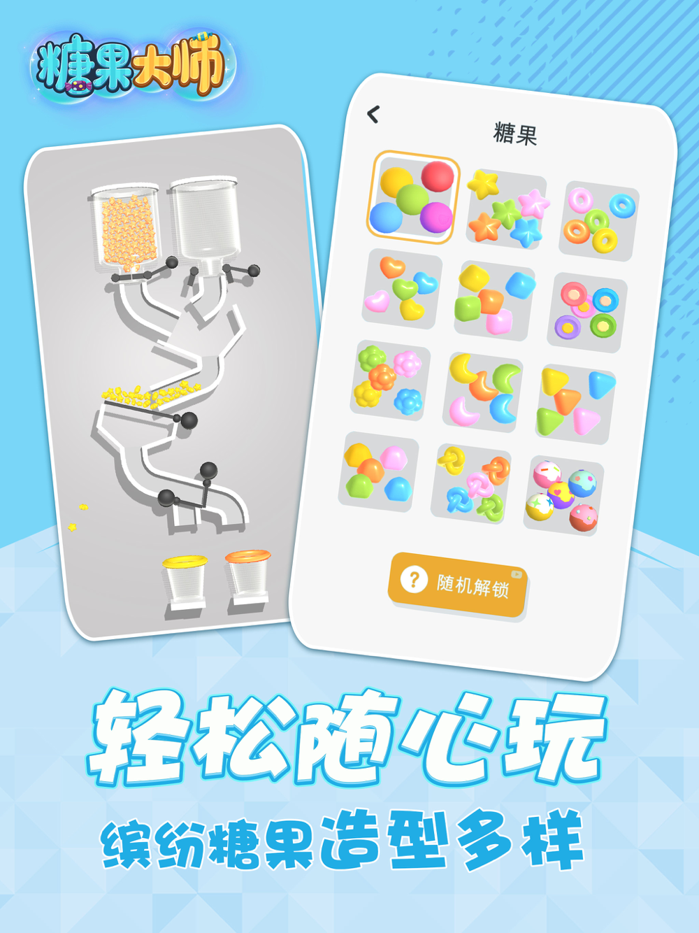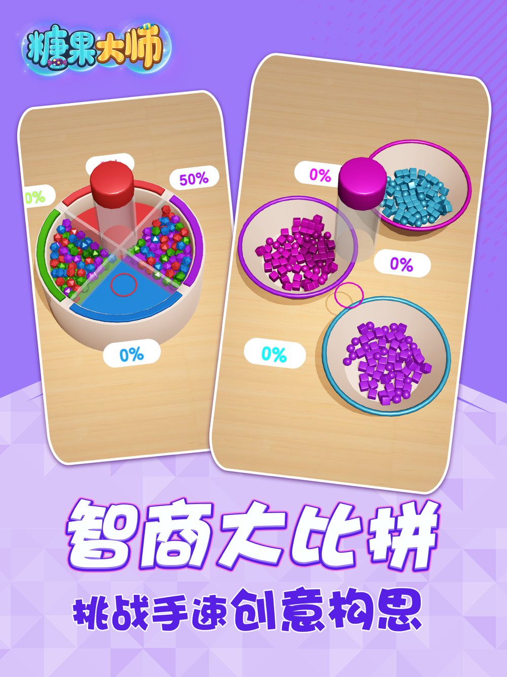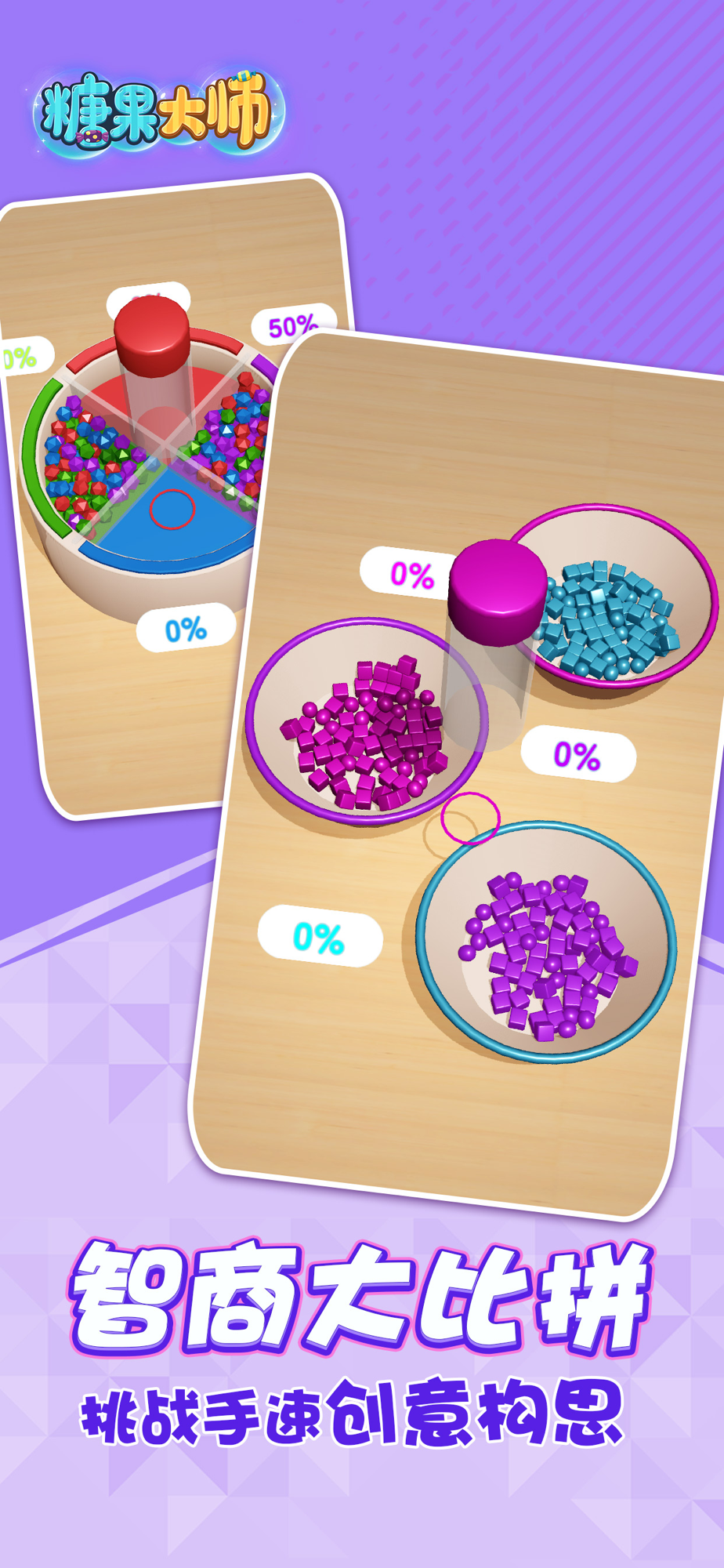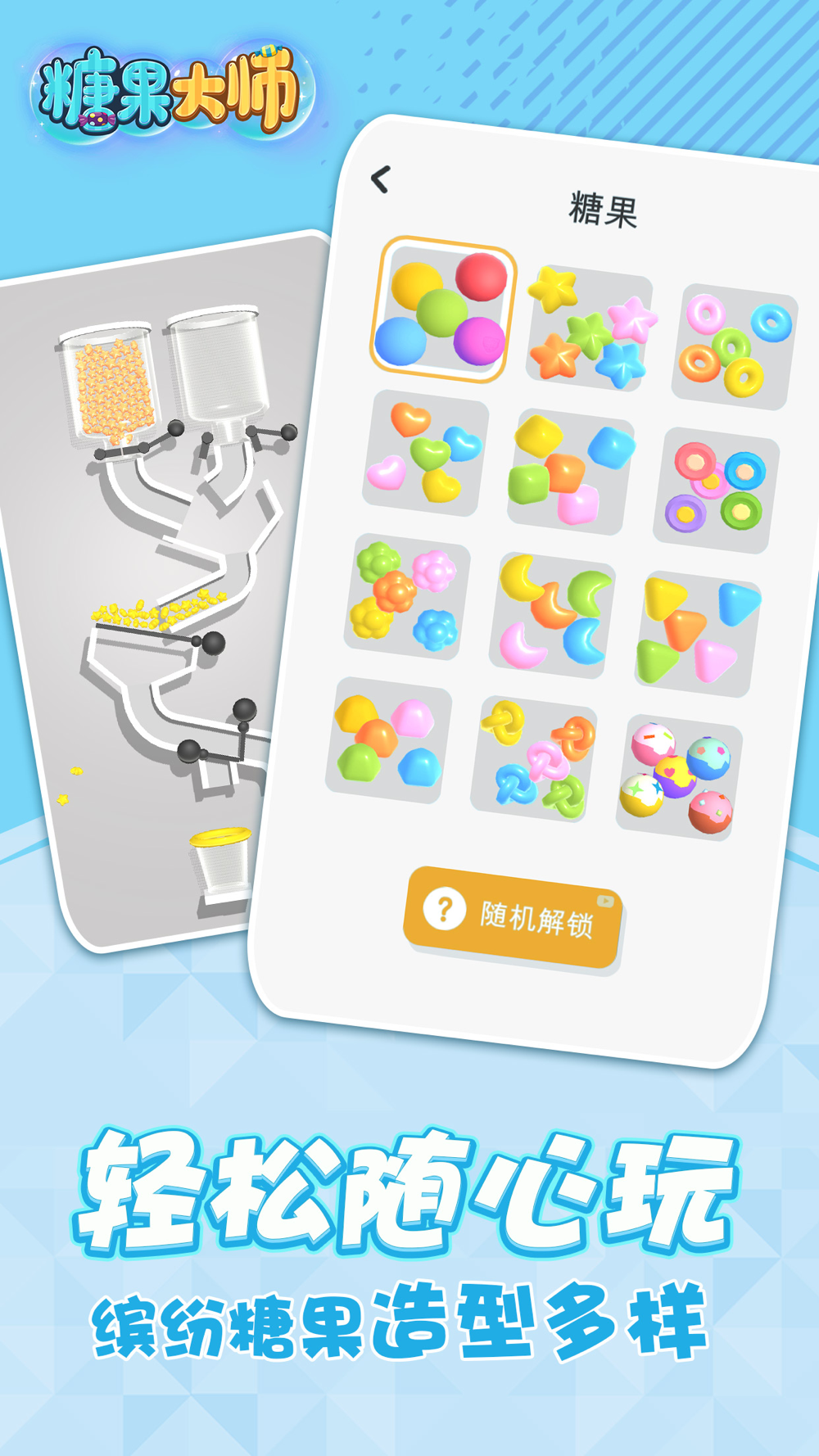 糖果大师是一款画风简洁的超休闲手游,在游戏中,玩家们通过移动指针控制糖果的下滑路径,让糖果正确的投入到瓶子中,操作很简单又具有一定的可玩性。