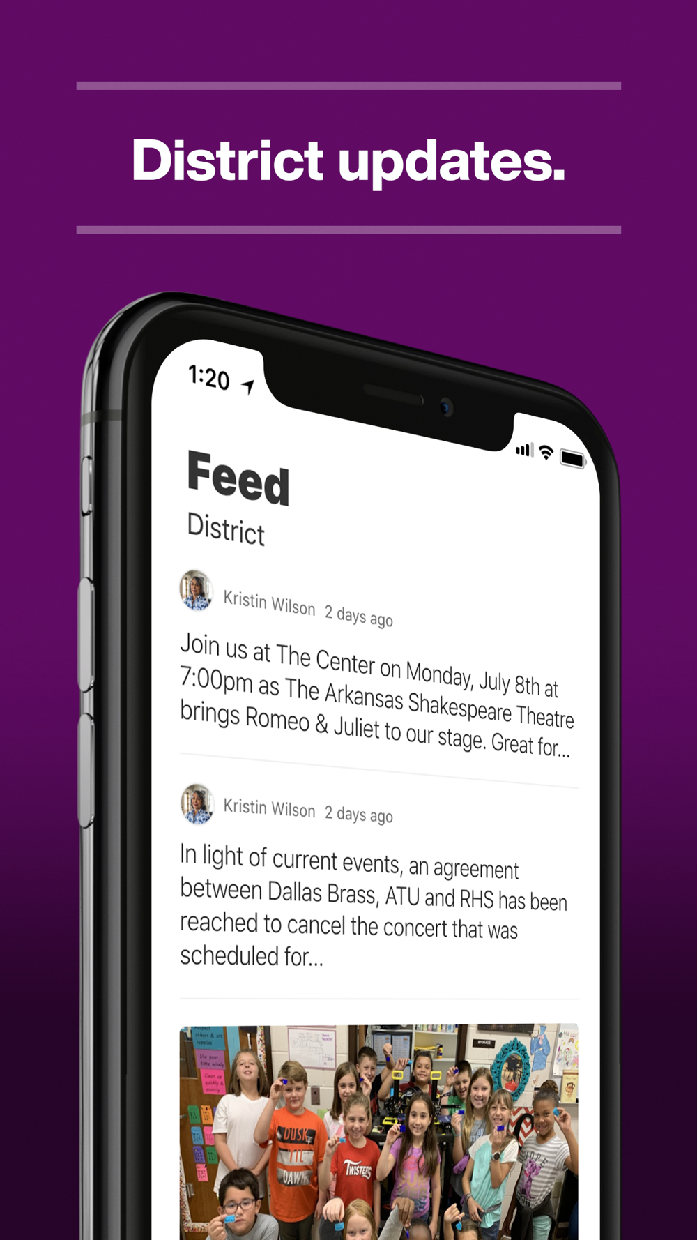 In the Live Feed is where you’ll find updates from administration about what’s going on in the district right now. Whether that’s celebrating a student’s success, or reminding you about an upcoming deadline.
