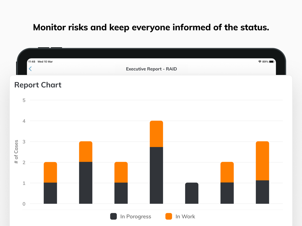 The mobile app puts viewable access to all the reports you’ve created in AdaptiveWork at your fingertips, so you can always get the latest status in real time. Away from your desk when a senior executive calls to check up on the status? No problem – you’ll have exactly what you need to answer their questions.