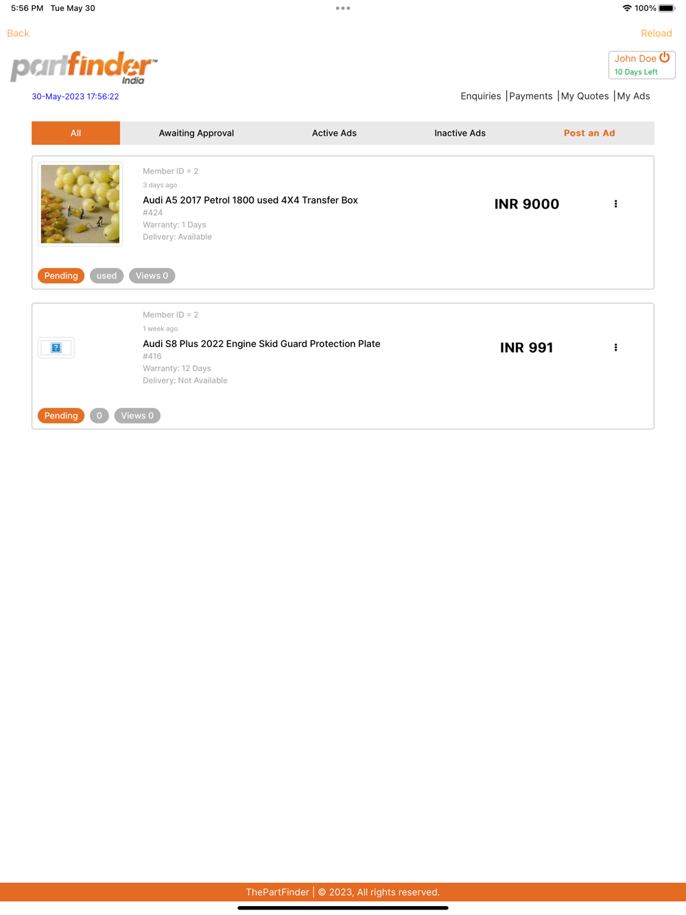 Through this FREE iOS APP auto spare parts sellers can quote prices to all types of auto parts and spare parts requests coming from the website from across the country. This app is basically an enquiry management system for designed for the members and sellers on www.thepartfinder.ae