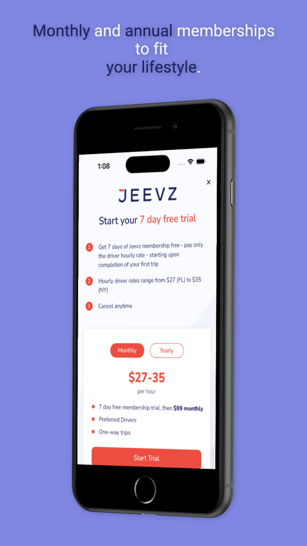 Whether you are in Florida, NY or anywhere else, a Jeevz membership fee is only $99 per month, or save 16% and get an annual membership at $999/yr. Jeevz members can book drivers for only $27/hr in Florida and only $35/hr in NYC.