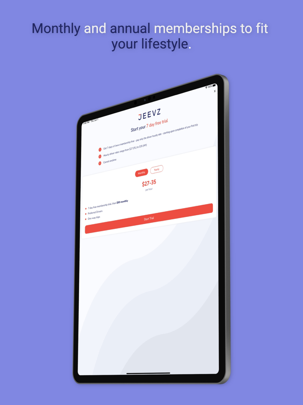 Jeevz sets itself apart from traditional black car or rideshare services with our unique, subscription-based on-demand chauffeur service. With Jeevz, you can experience top-level service while enjoying the comfort and familiarity of your own car. No surge pricing, airport fees, or expensive parking. Our easy-to-use, intuitive app lets you schedule your driver in seconds to take you around town or run your errands. And if you love your driver, you can add them to your preferred list for future use. Jeevz is your car, your choice, and our experienced driver.
