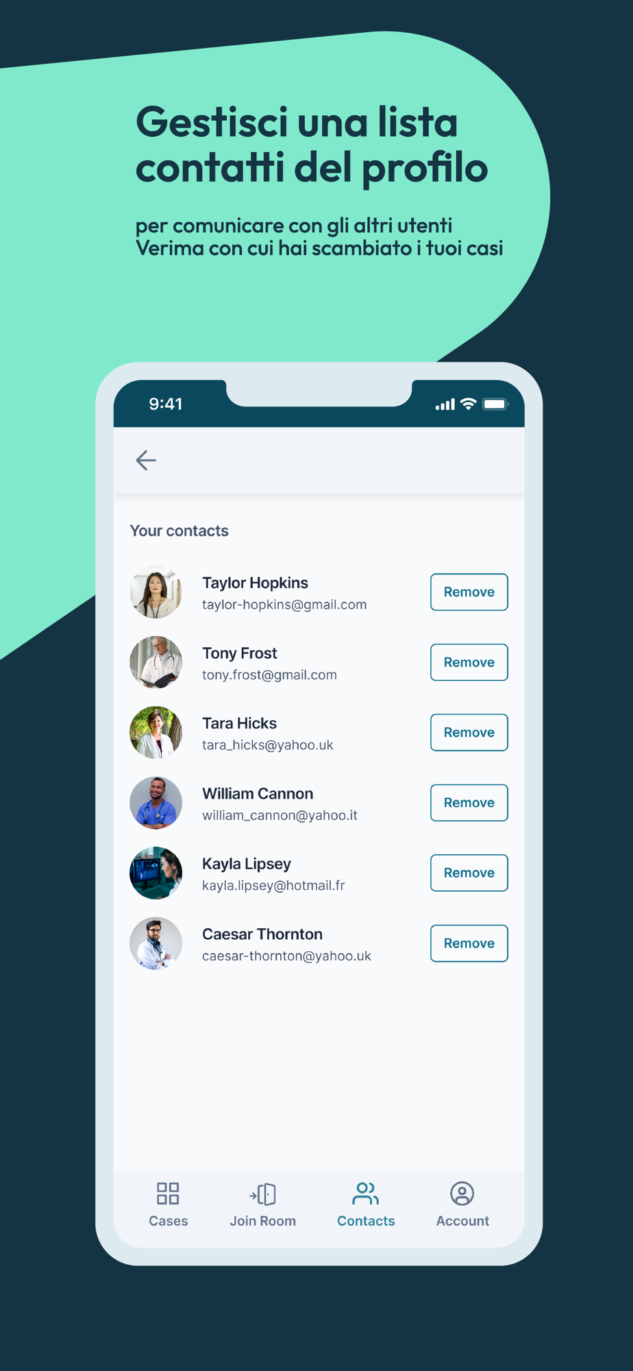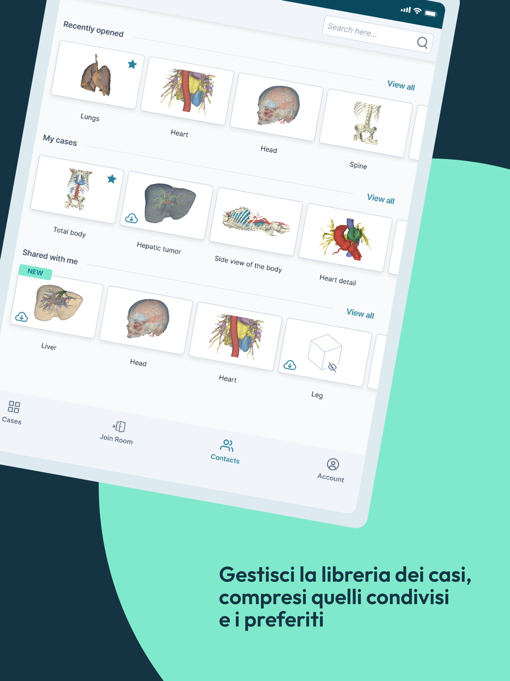 - Condivisione: possibilità di condividere i casi con pazienti o altri specialisti;