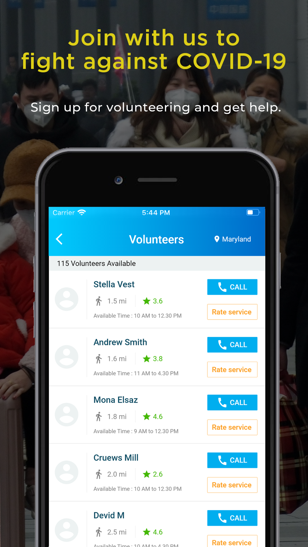 Use GiveHelp to register your volunteer groups, add member names, phone numbers, and availability times.