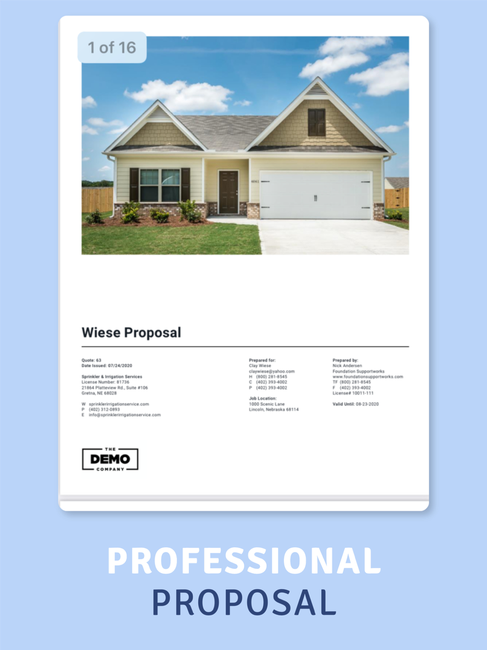 Proposal and Payment – After the presentation, the homeowner is presented with a professional branded proposal and payment can be taken.