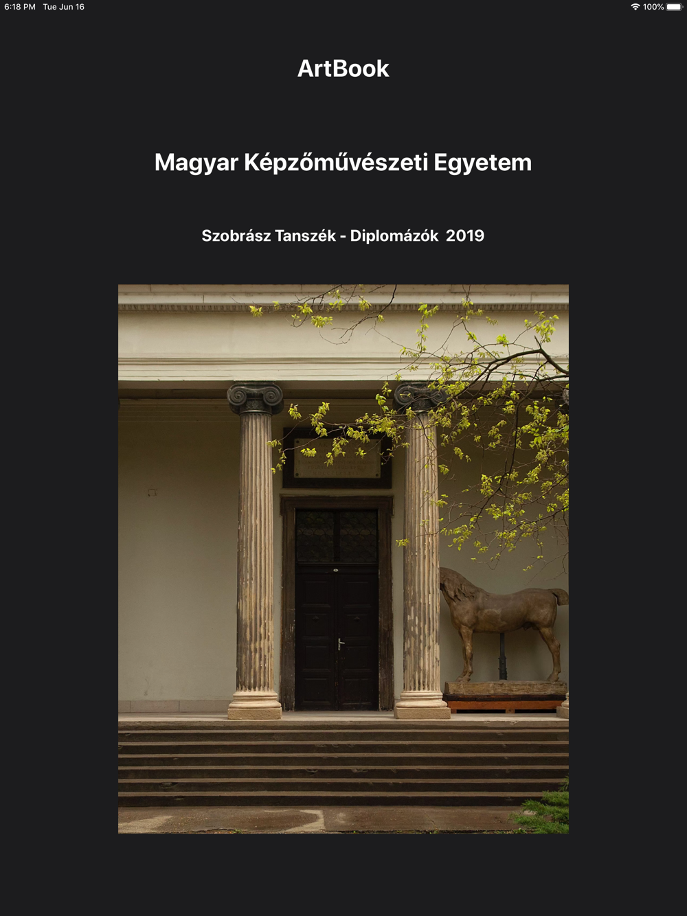 Ez az alkalmazás 7 fiatal szobrászművész diplomamunkáját tartalmazza, akik 2019-ben diplomáztak a Magyar Képzőművészeti Egyetem (MKE) Szobrász Tanszékén.
