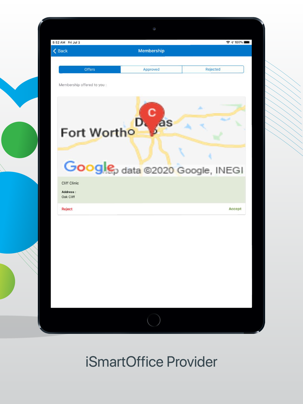 This application has 2 (two) account role providers and assistants, to manage their busy working schedules as well as easily communicate with other office staff and managers. iSmartOffice Provider also helps link providers and assistants with prospective employers.
