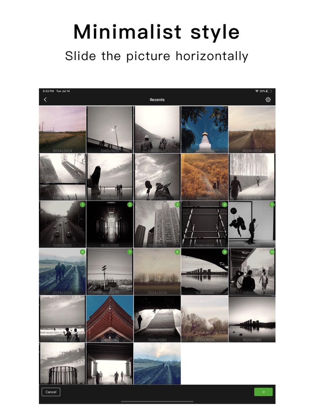 - Manual cropping mode, support manual cropping of a single picture;