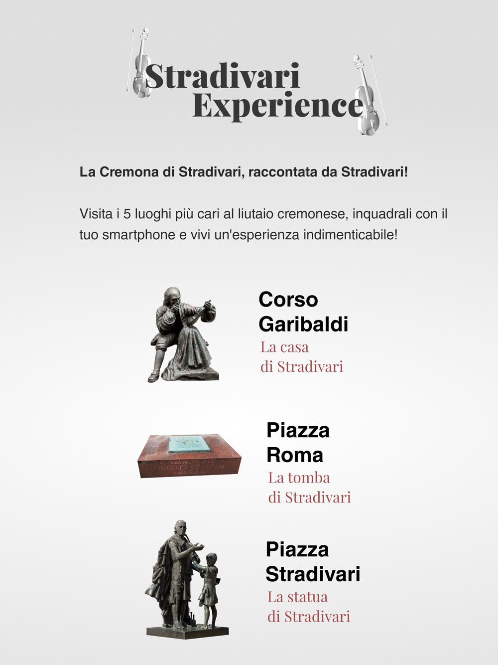 Visita i 4 luoghi più cari al liutaio cremonese, inquadrandoli con il tuo smartphone e vivi un'esperienza indimenticabile